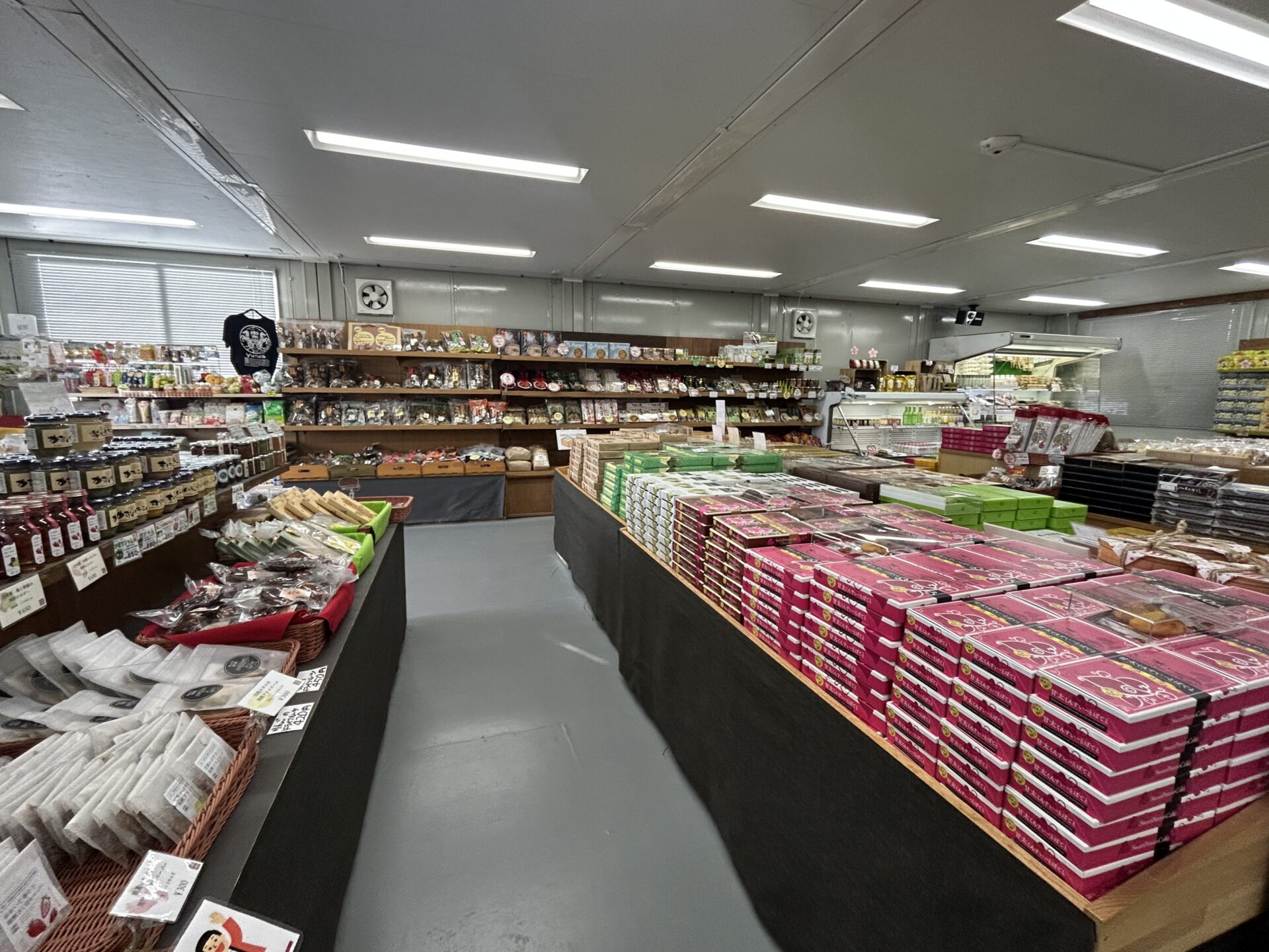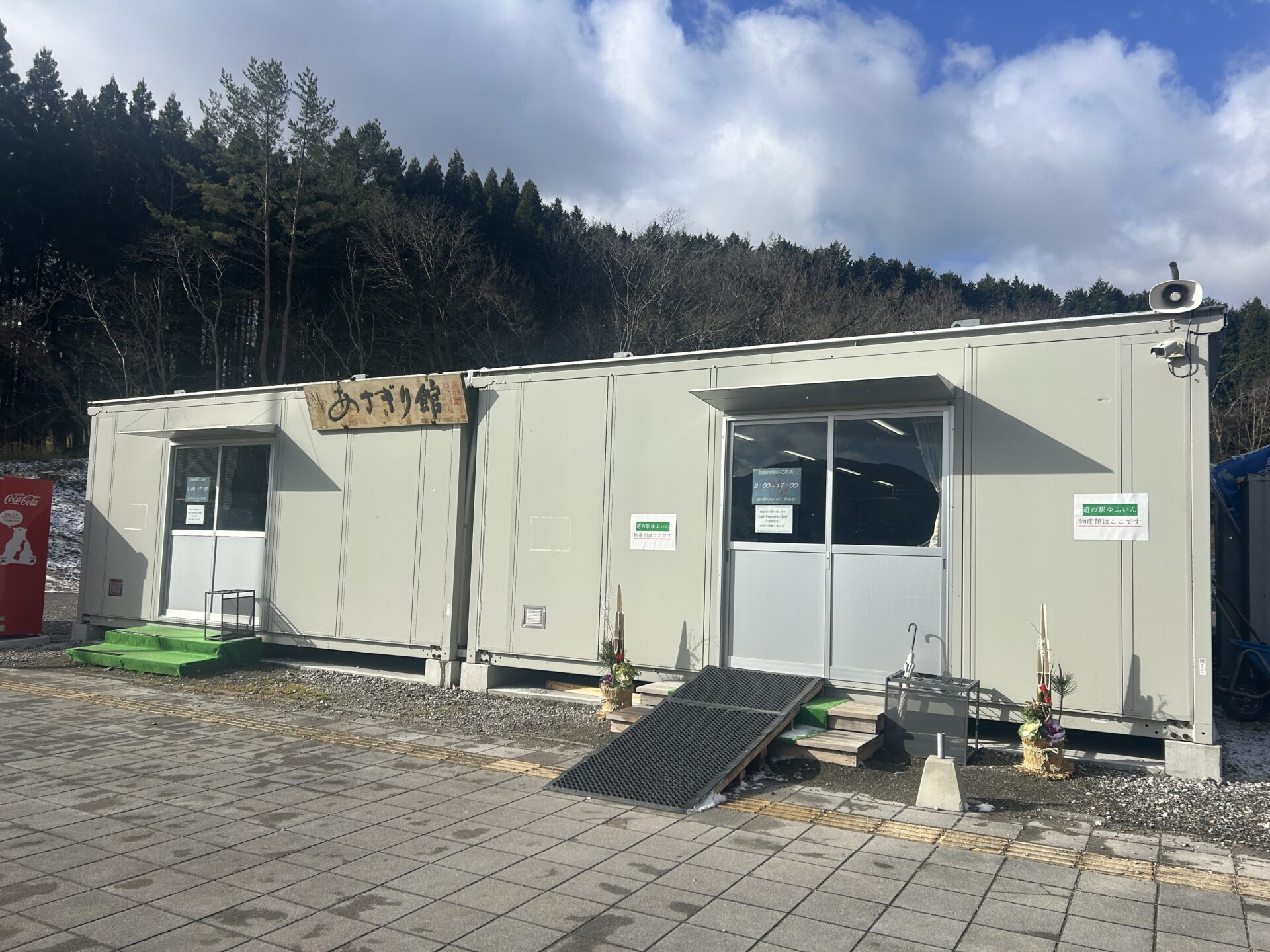 敷地奥にプレハブの仮説店舗が設けられており、こちらでは土産物・農産物のみ販売されています。
