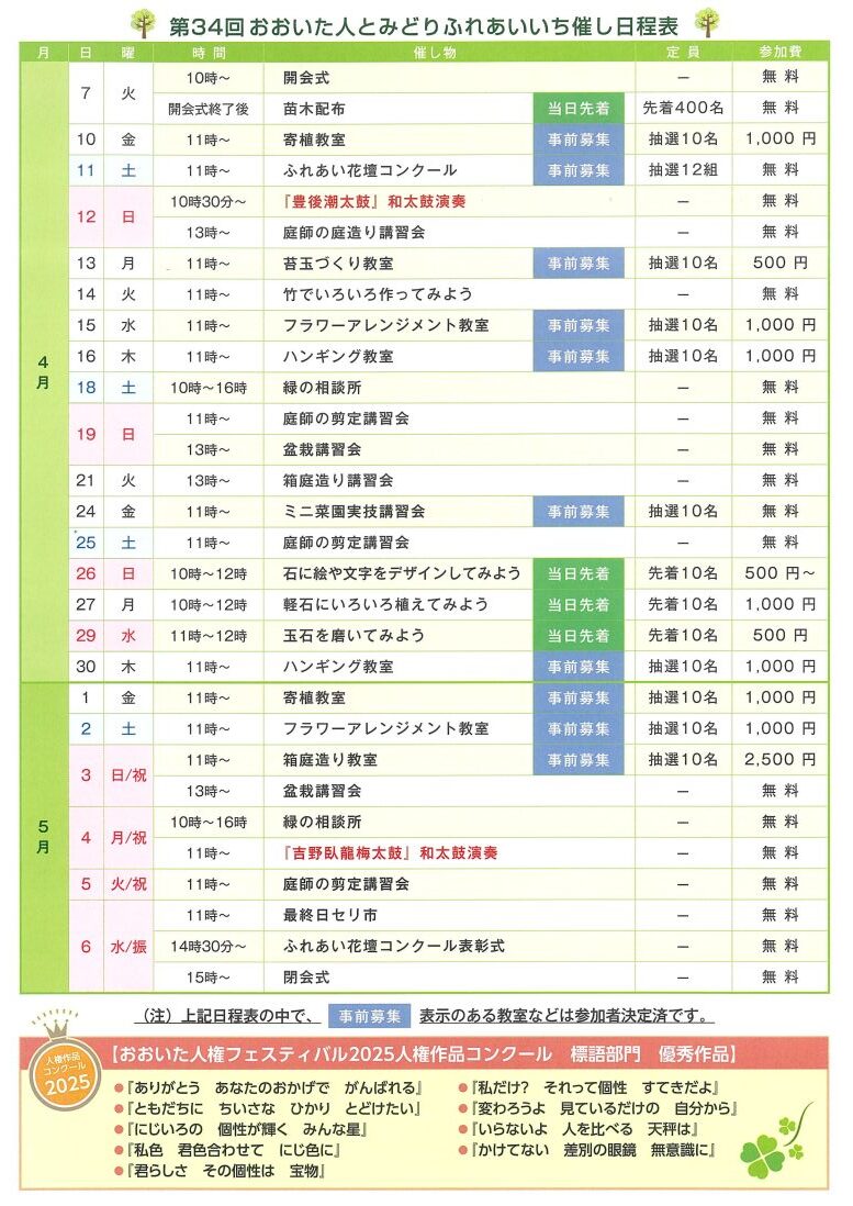 明日から『第34回 おおいた人とみどりふれあいいち』が開催されます。