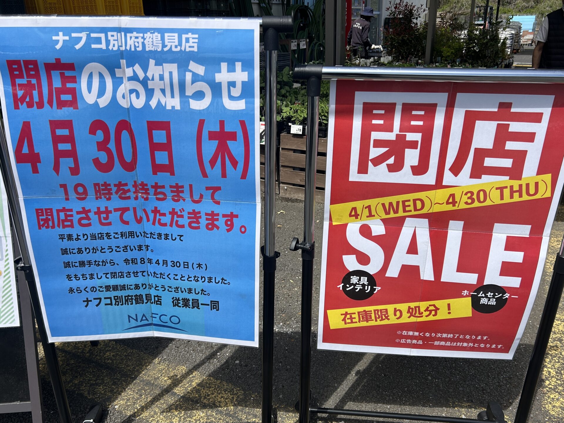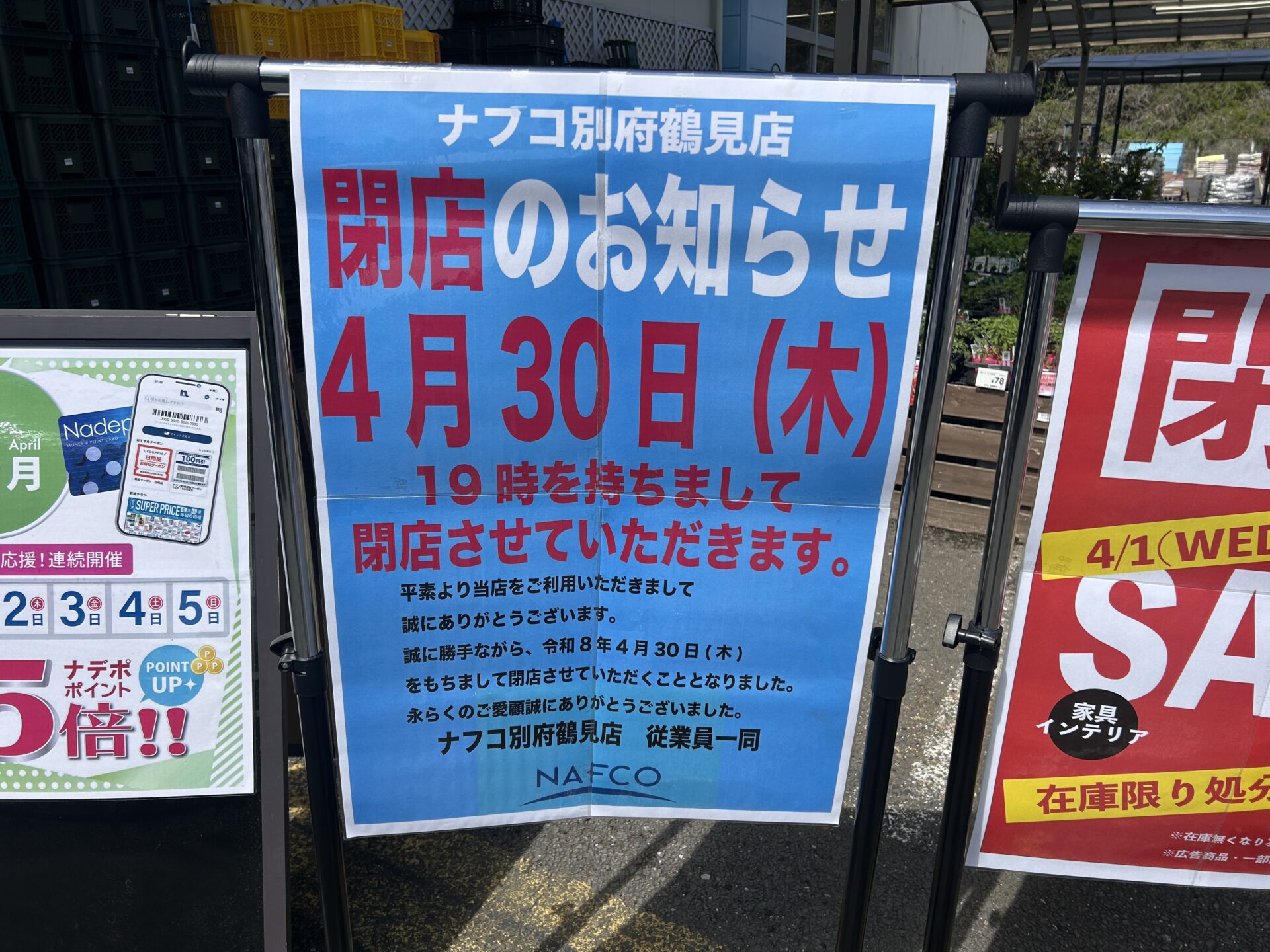 別府市の『ナフコ 別府鶴見店』が閉店するそうです。