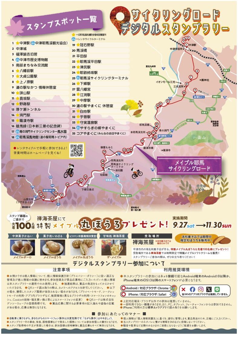 中津市で『メイプル耶馬サイクリングロードデジタルスタンプラリー』が開催中です。