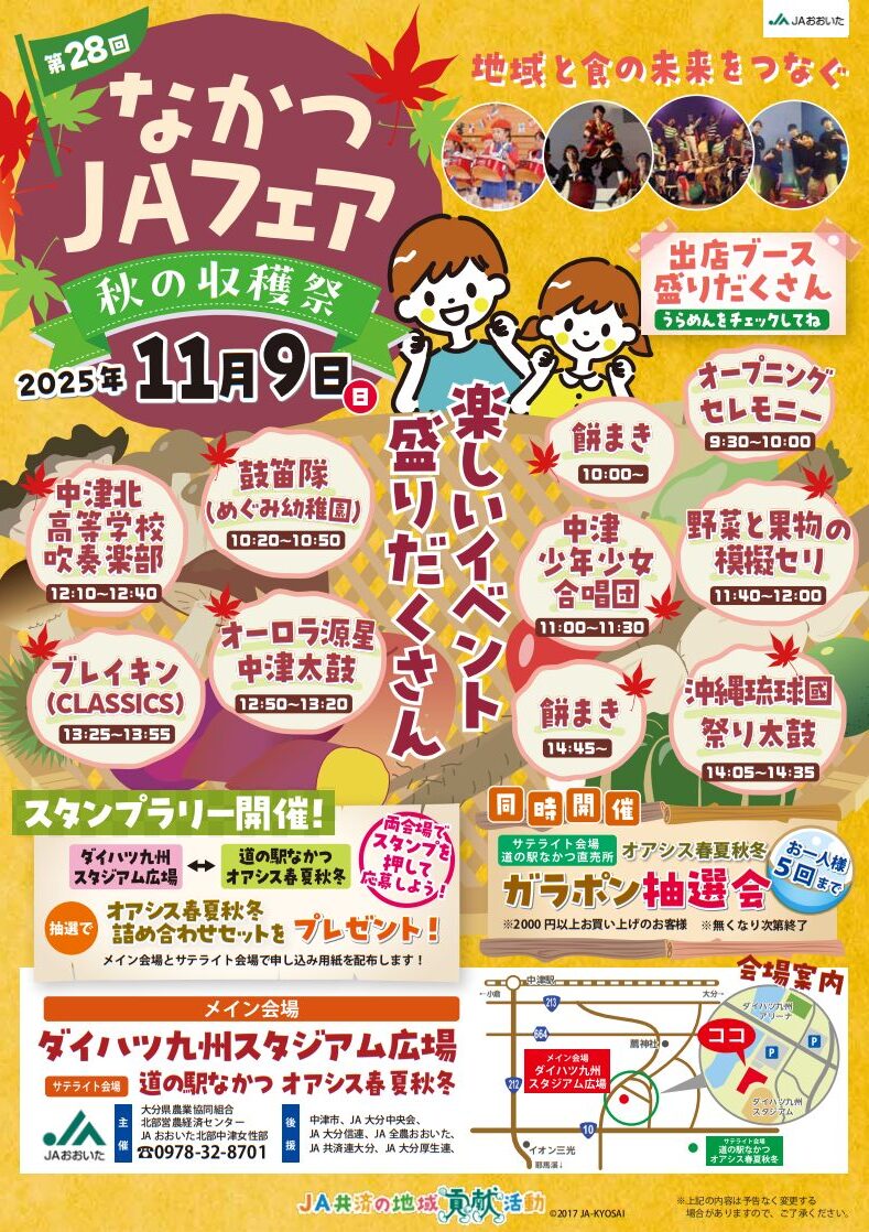 中津市で『第28回 なかつJAフェア 秋の収穫祭』が開催されます。