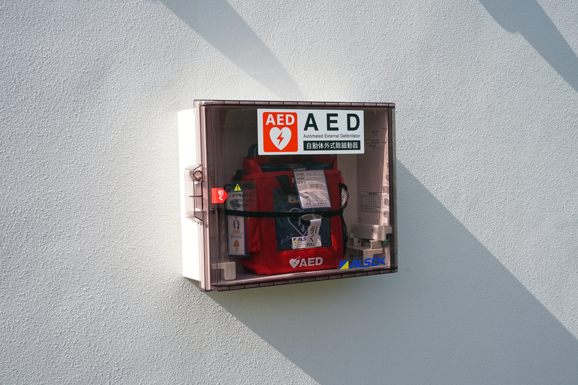 近くにはAEDの機械も設置されていました。