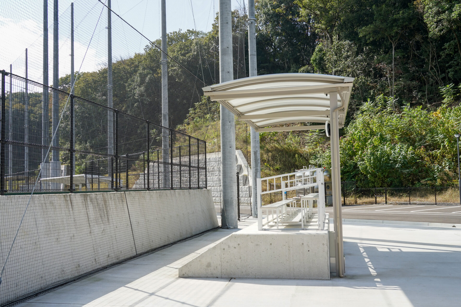 周囲がネットで囲まれている造りで、ベンチもありますが壁で囲まれていないので風が吹き抜けるようになっています。