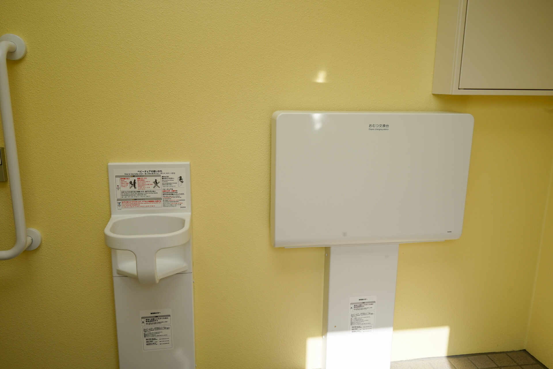 トイレのは身障者用トイレがあり、そちらにおむつ替え台とベビーチェアも完備されていました。