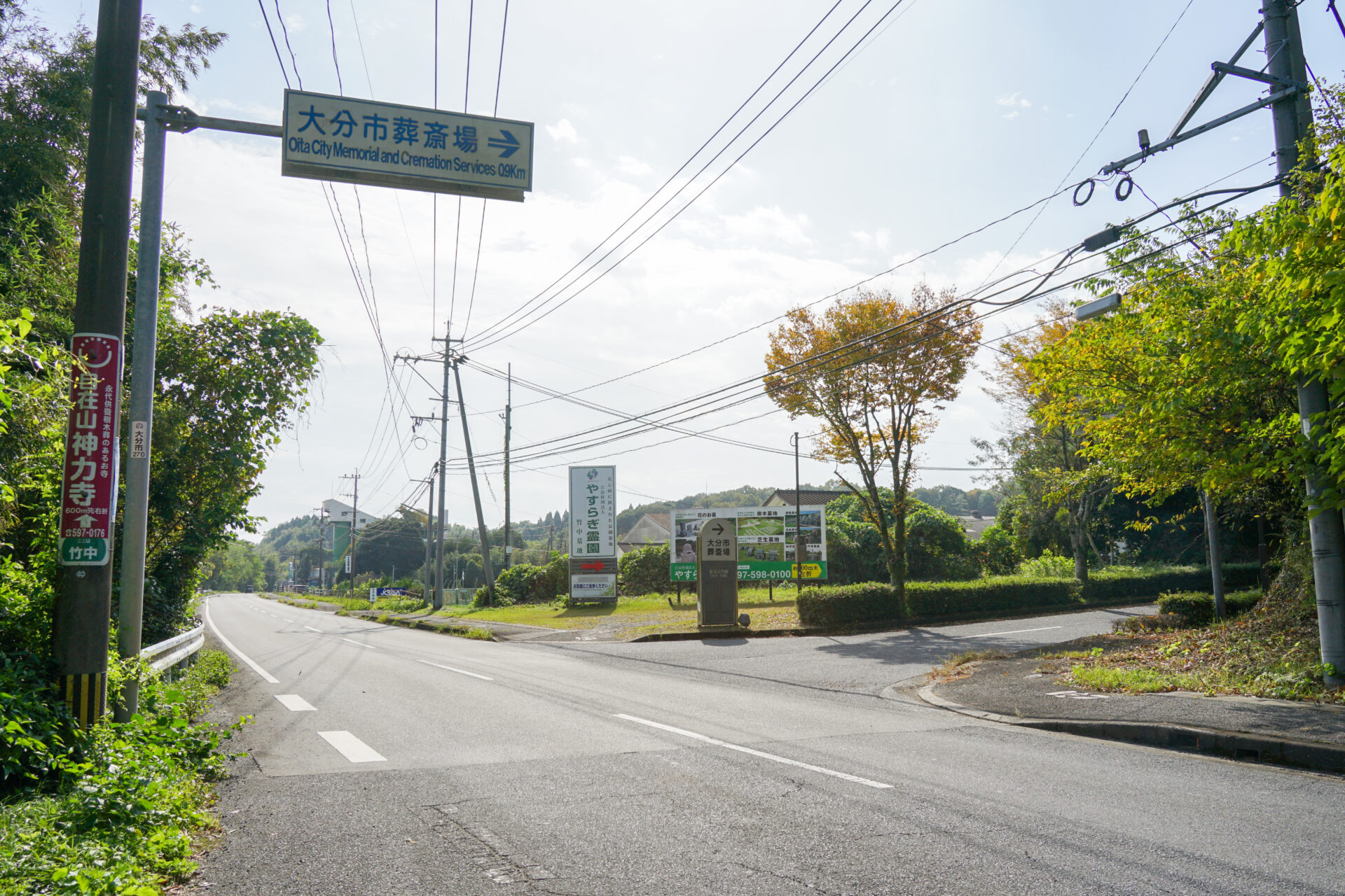 このすぐ先が大分市葬斎場です。