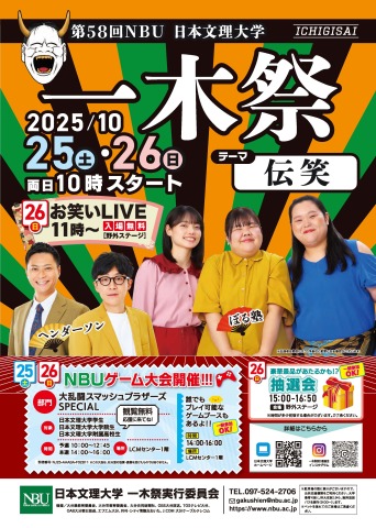 人気お笑い芸人LIVEも!NBU日本文理大学で『第58回 一木祭』が開催されます。
