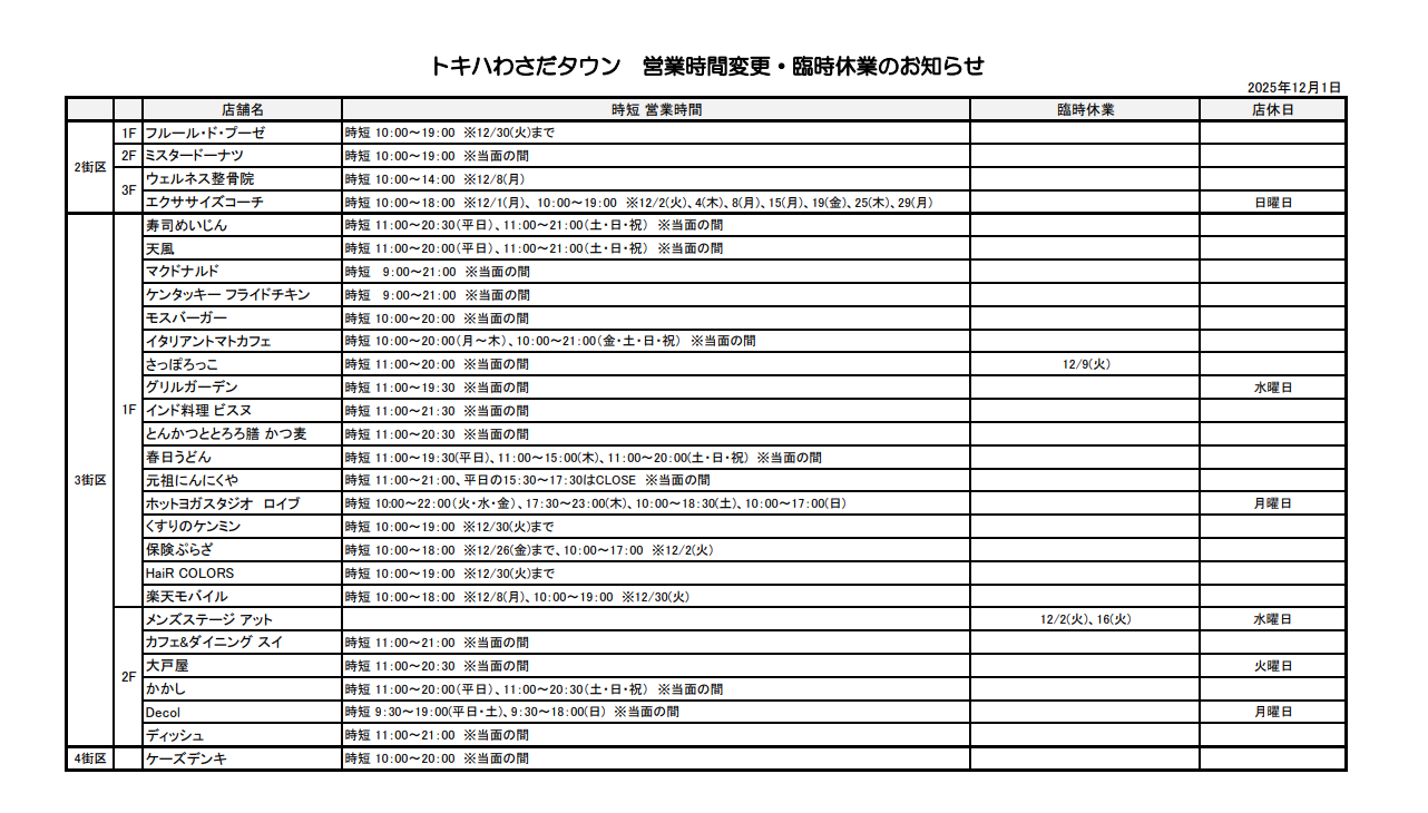 年末・年始は営業時間が異なります。わさだタウン2街区■ 12月31日(水)⇒9:30 ~ 18:00■ 2026年1月…