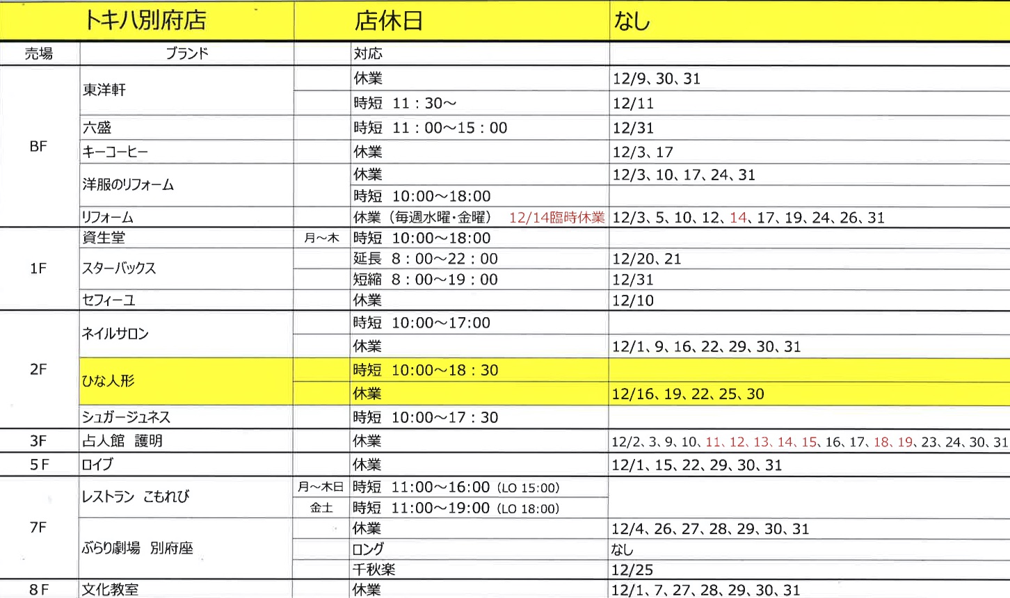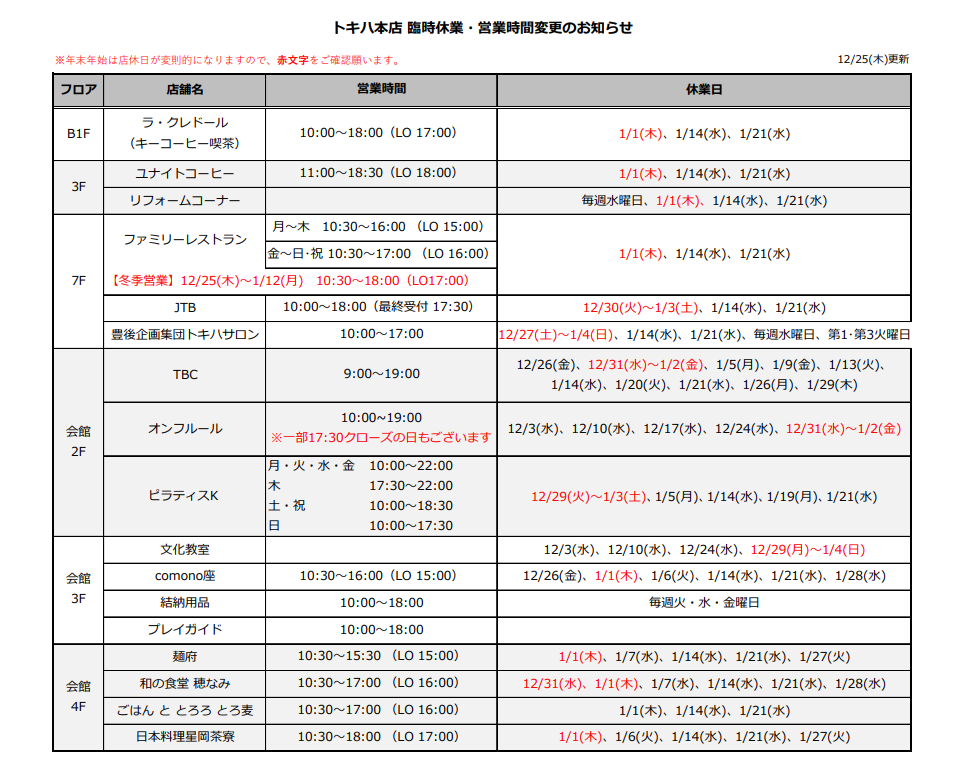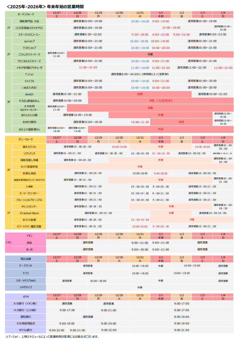 大分県内の主な商業施設『年末年始 営業日・営業時間』をまとめました。お出かけの参考にして下さい♪