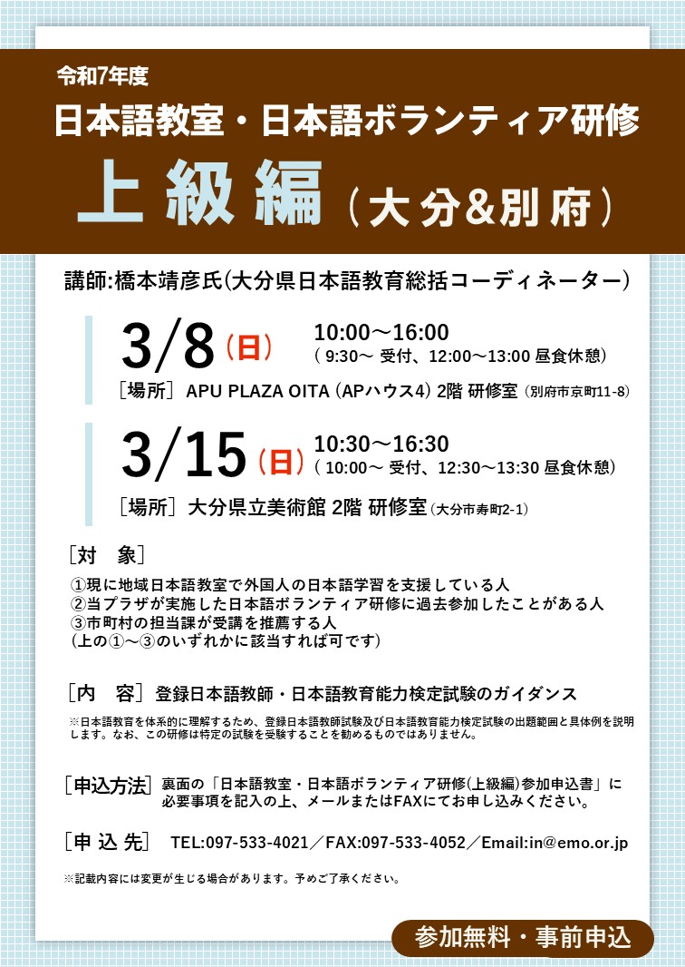 『令和7年度 日本語教室・日本語ボランティア研修(上級編)』が開講されます。