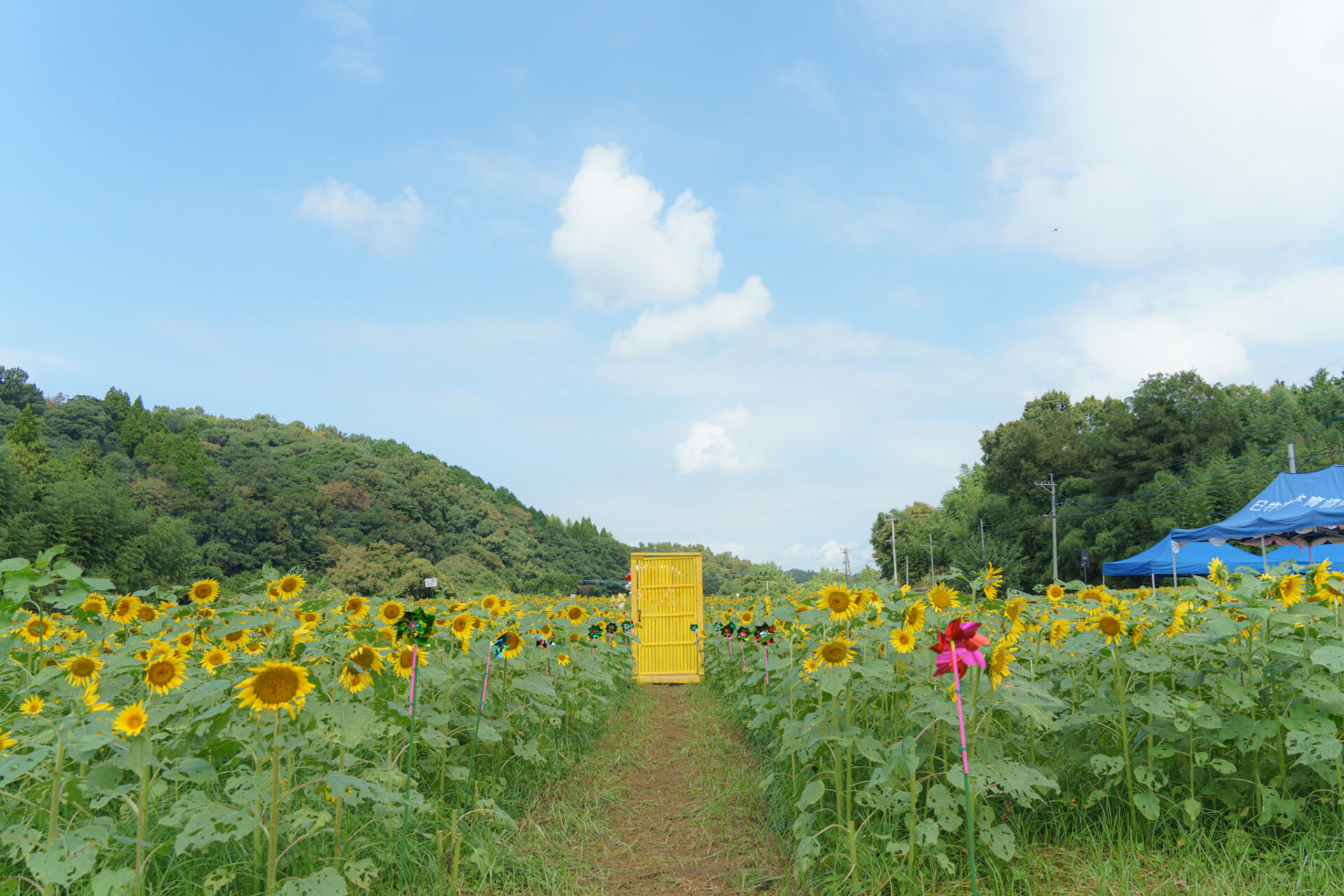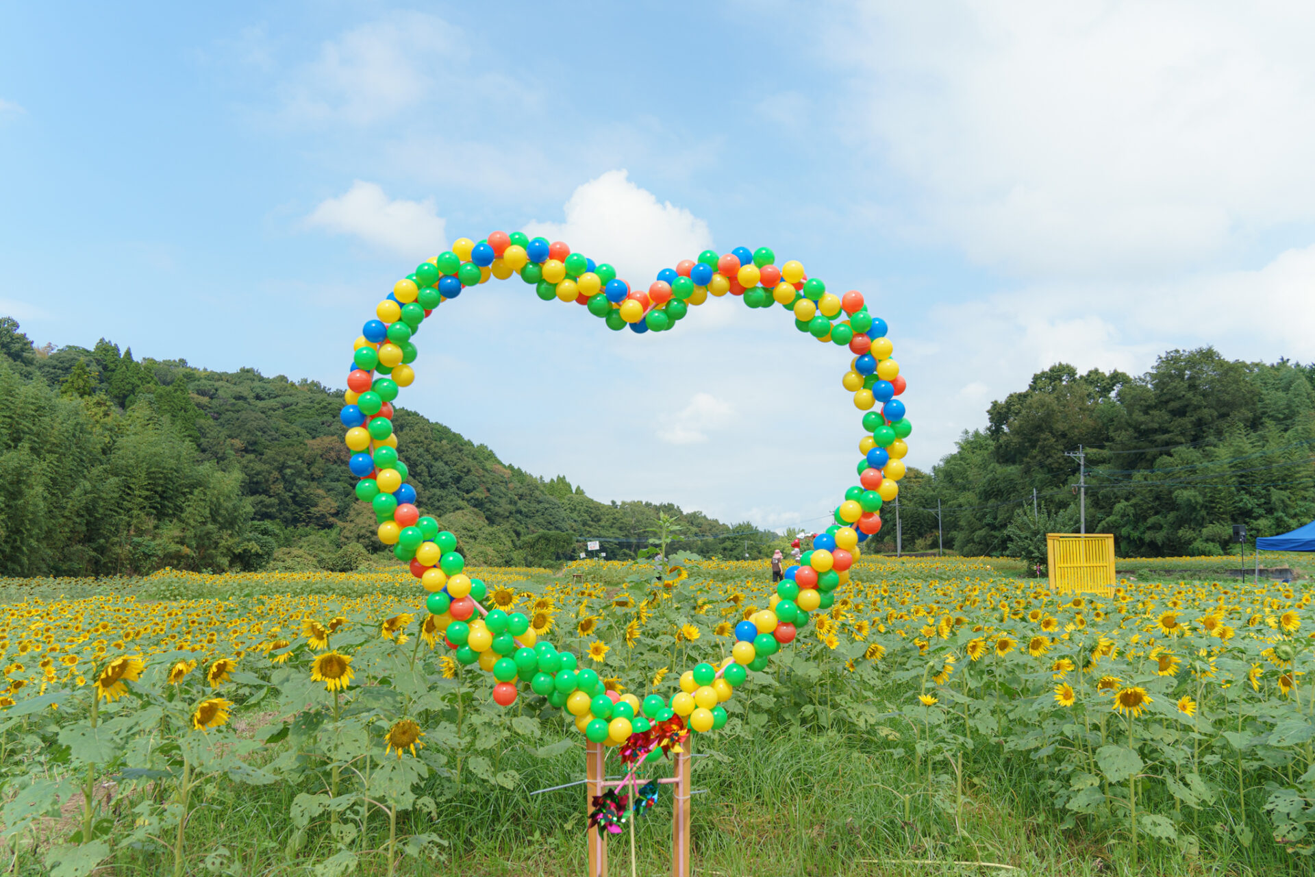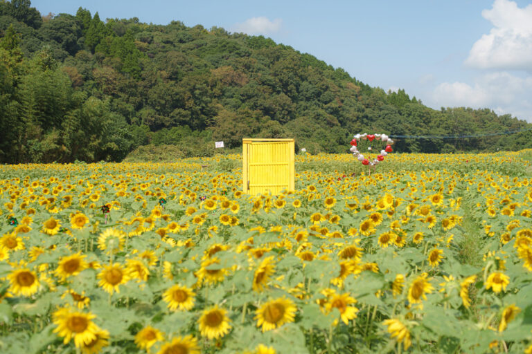 本部テント近くにあるひまわり畑には黄色いドアやハートのフォトスポットがあります。