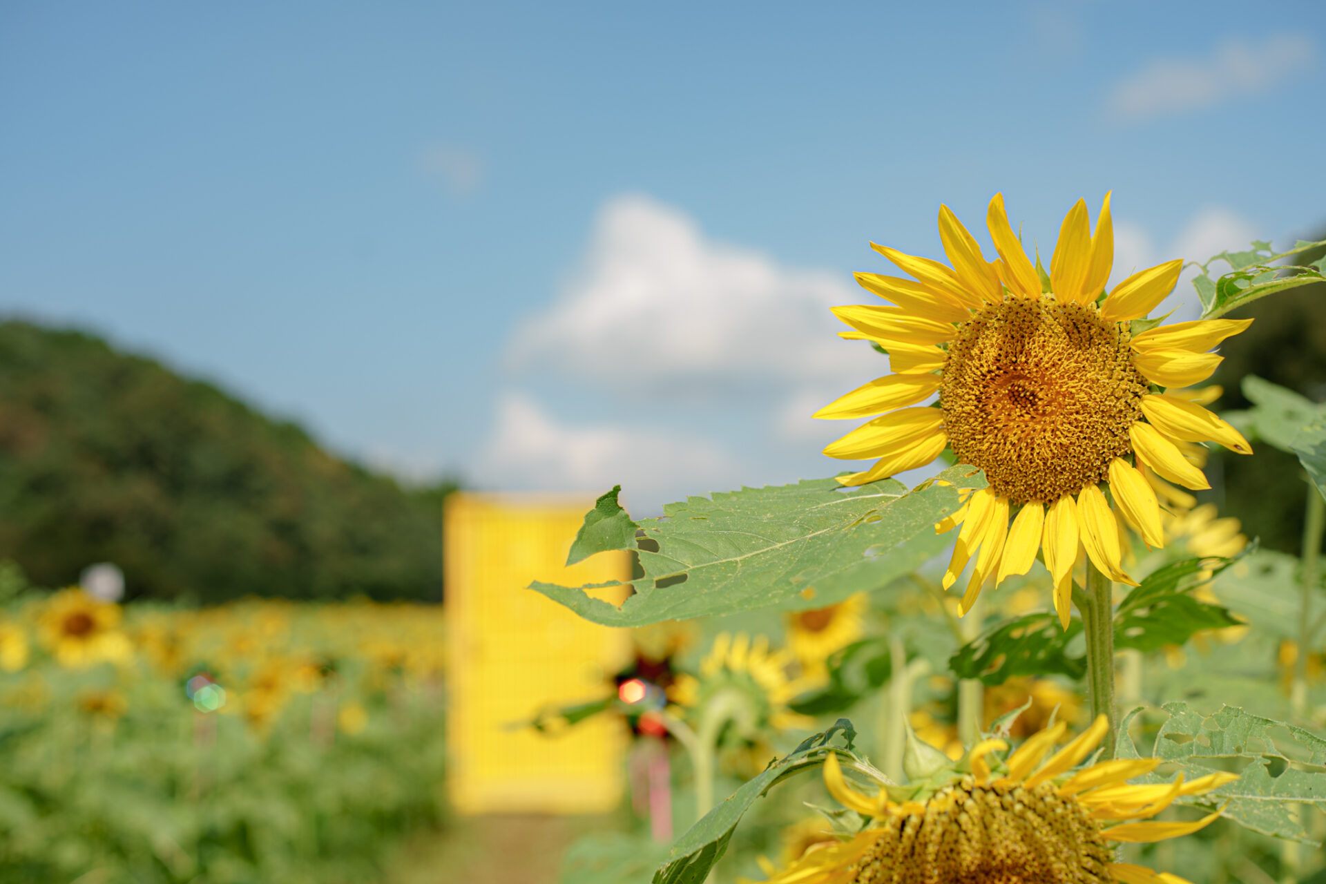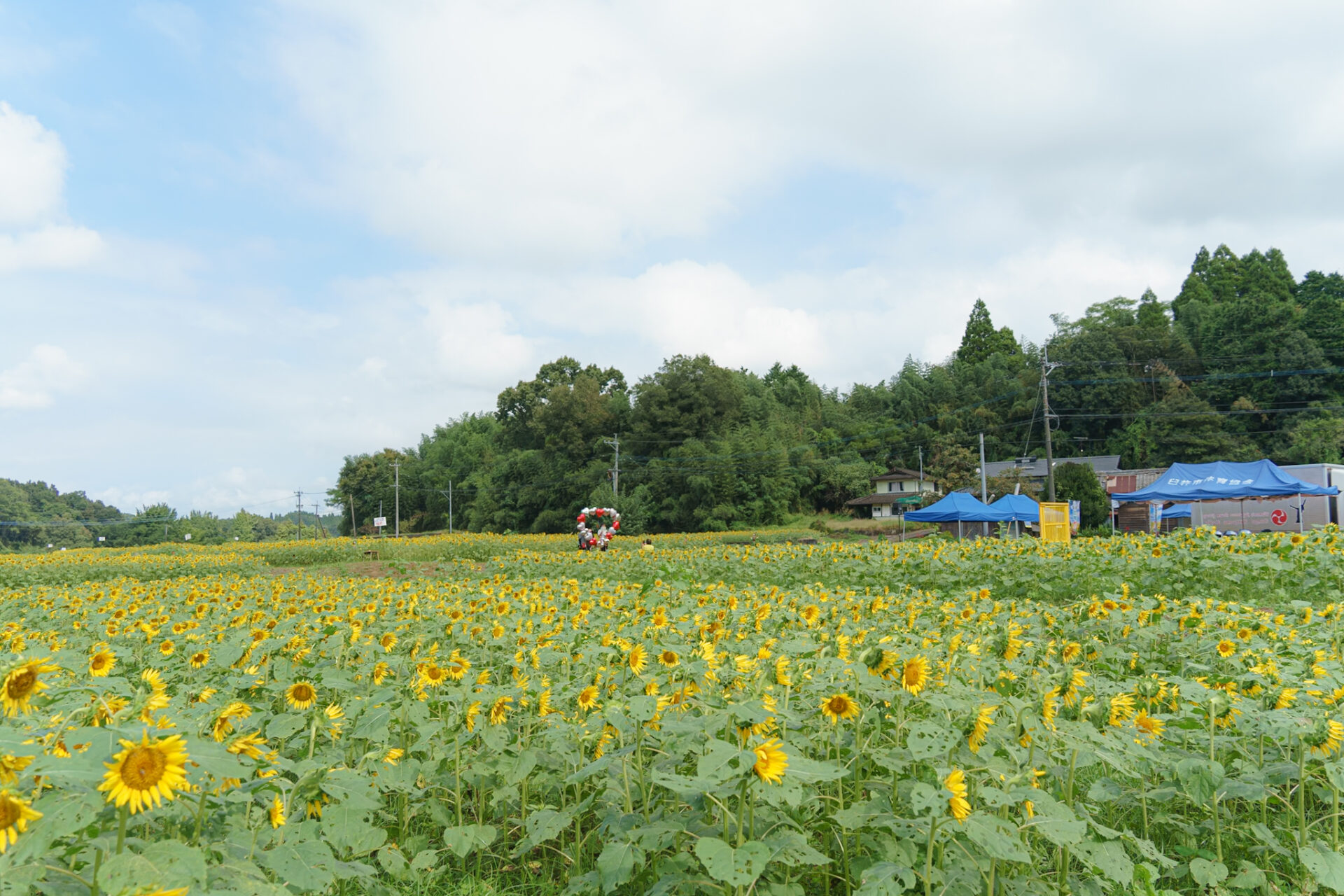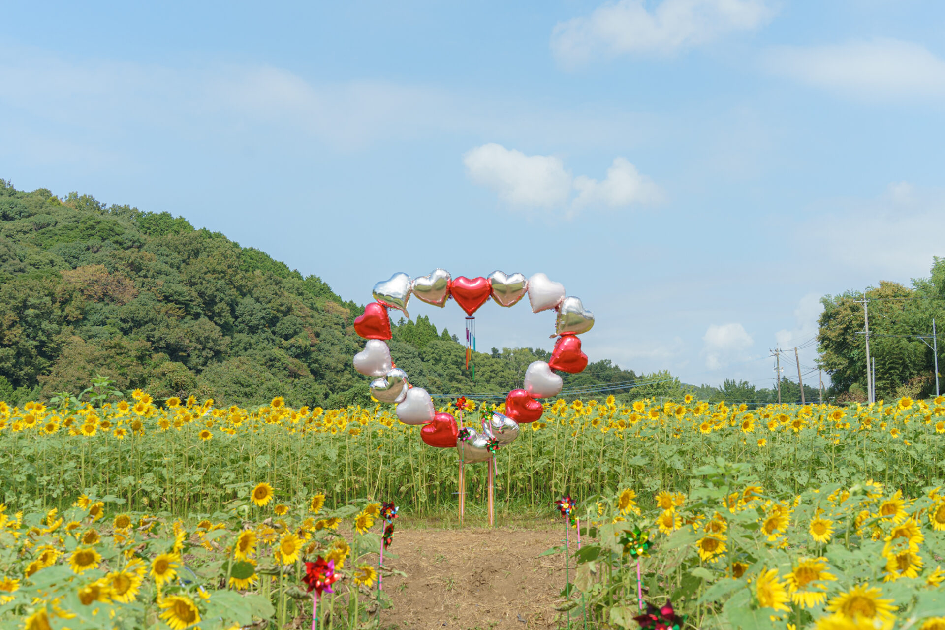 本部テント近くにあるひまわり畑には黄色いドアやハートのフォトスポットがあります。
