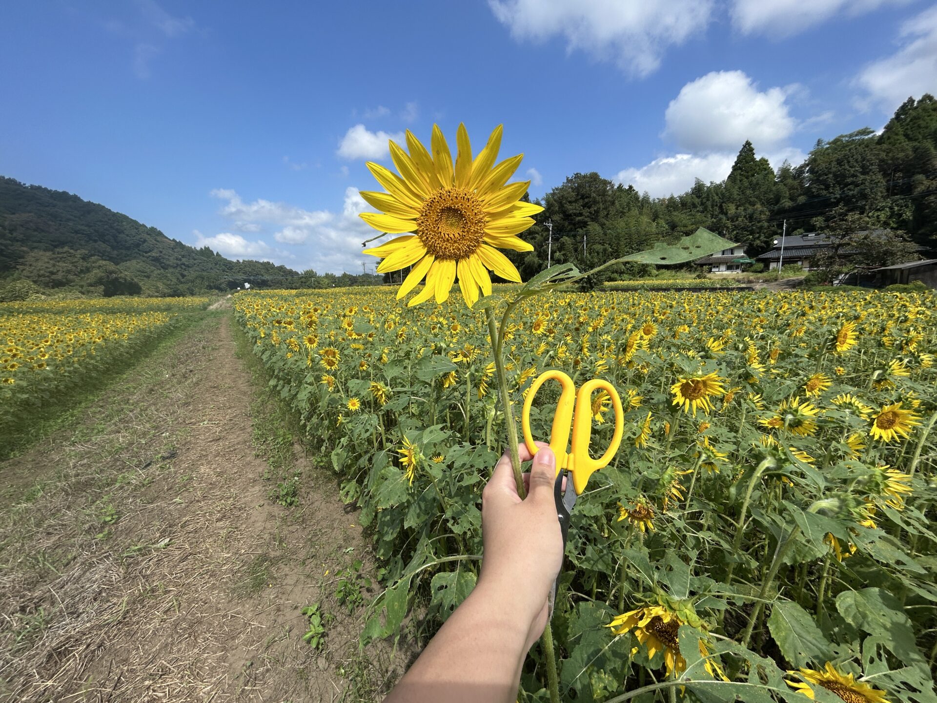 ひまわりフェスタ終盤ということもあり、ひまわりを自分で刈り取って好きなだけ持ち帰ることもできます。