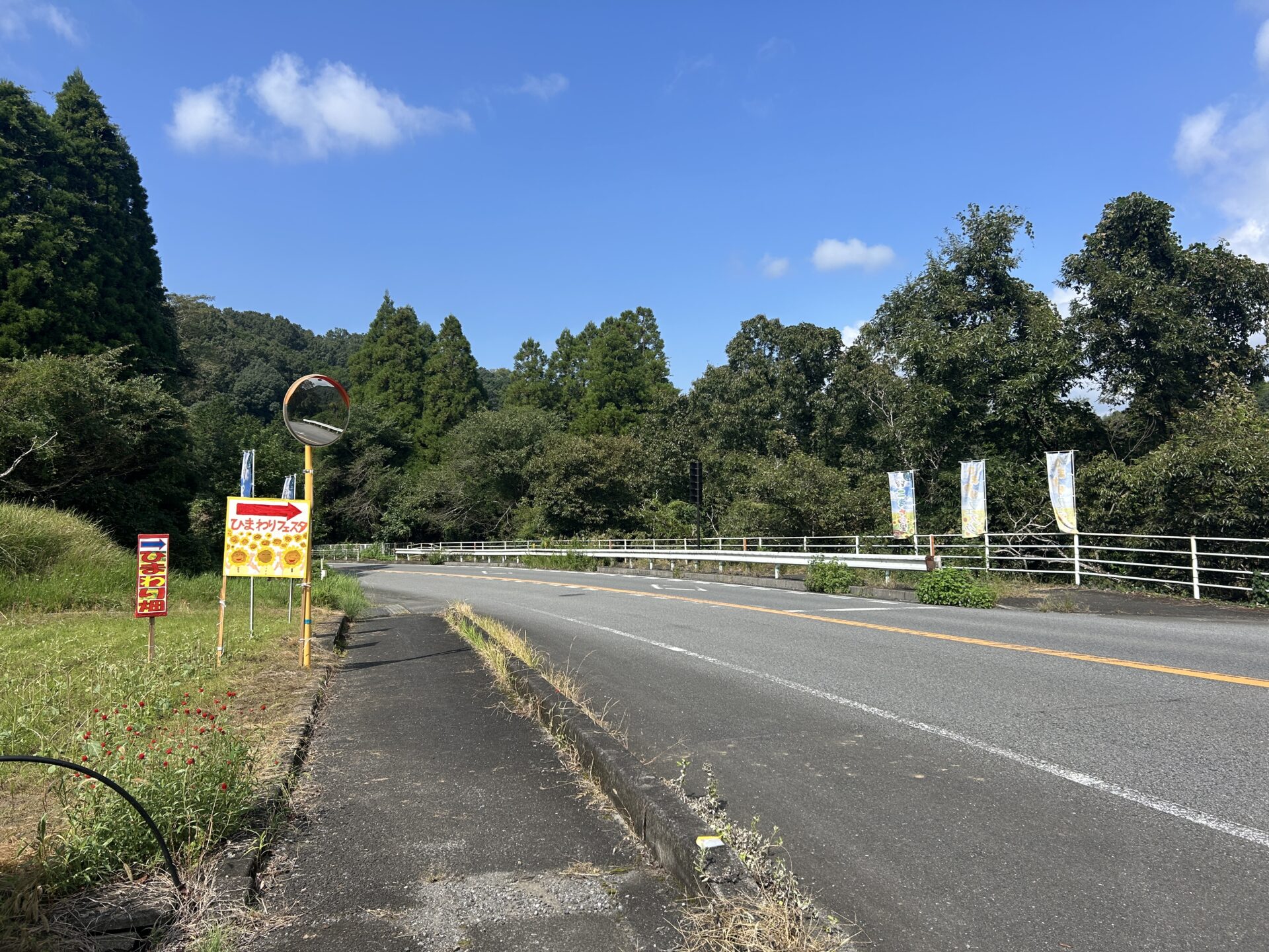 大分市中心部から車で1時間ほど、野津町の中心部からさらに佐伯方面へと進むと、「ひまわり」の看板や旗が立っていますので案内に従って集落へと入っていきます。