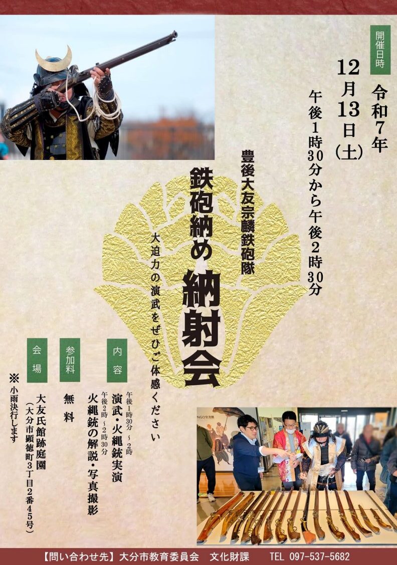 大友氏館跡庭園で鉄砲納め『納射会』が開催されます。