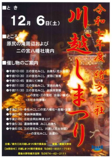 豊後大野市で『令和7年度 緒方三社川越しまつり』が開催されます。