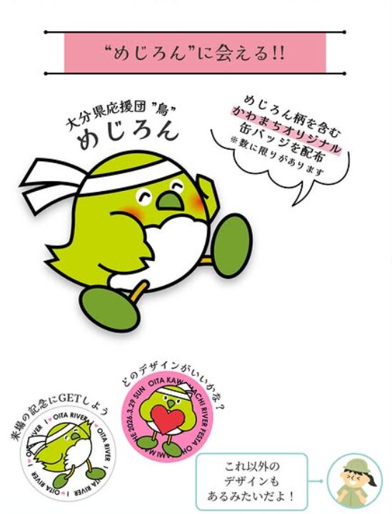 そして、大分県応援団“鳥”のめじろんが登場!オリジナル缶バッジの配布もあるそうですよ!