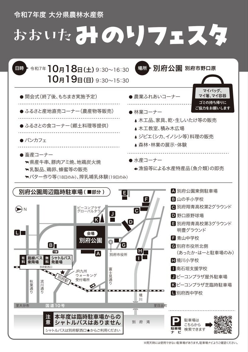 別府公園で『大分県農林水産祭 おおいたみのりフェスタ』が開催されます。