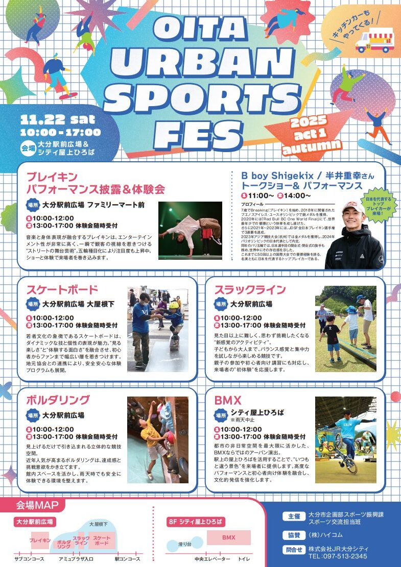 スペシャルゲストはShigekixさん!大分市で『OITA URBAN SPORTS FES 2025 act1 autumn』が開催されます。