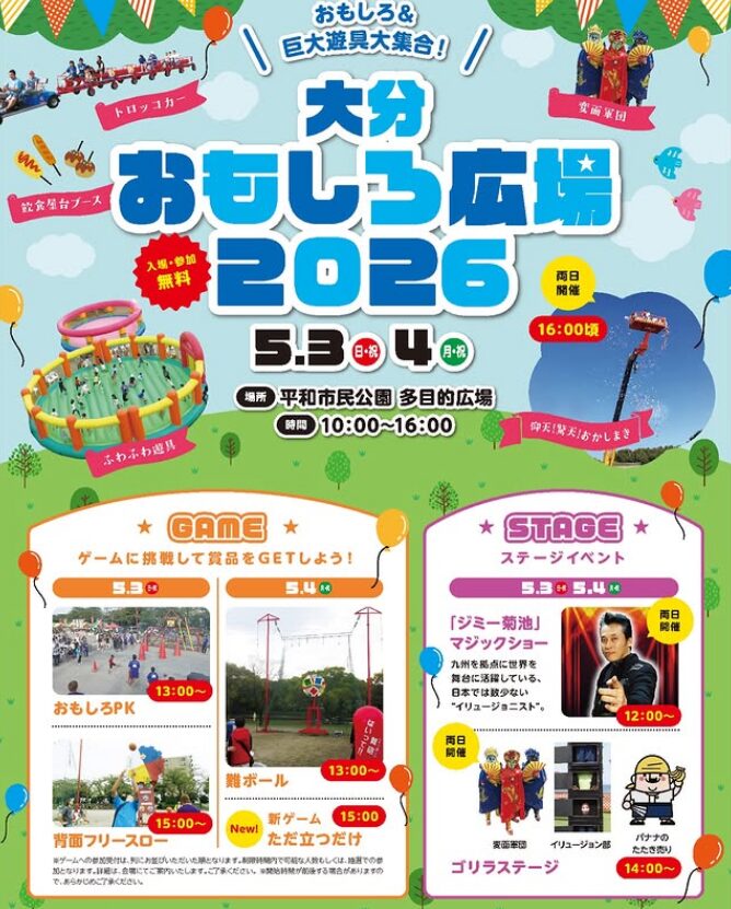おもしろ&巨大遊具集合!『大分おもしろ広場 2026』が開催されます。