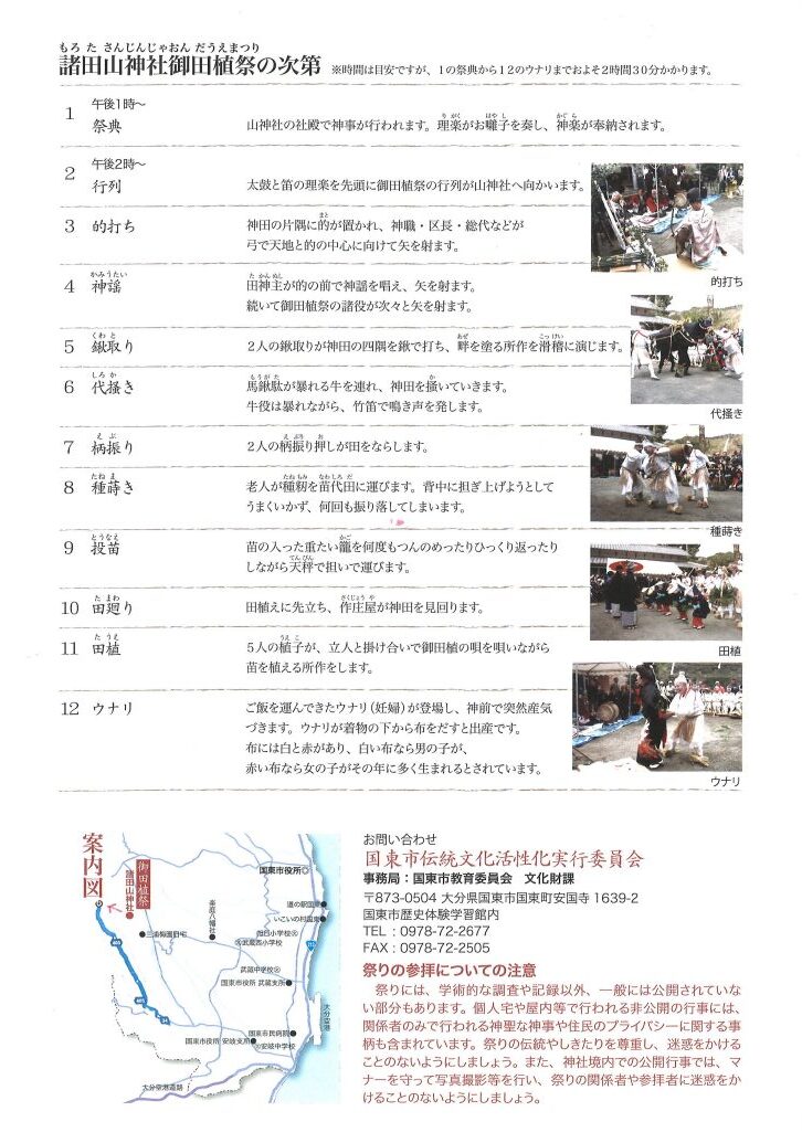 国東市安岐町明治の諸田地区に伝わる伝統行事で、毎年春分の日に行われています。