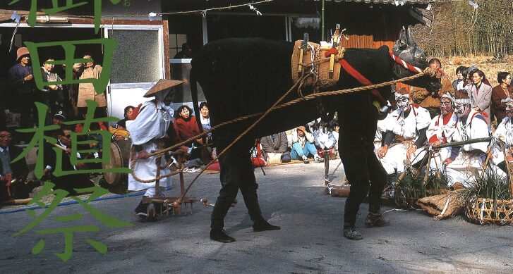 出演者の滑稽な化粧と所作に特徴を持つ五穀豊穣と子孫繁栄を願うお祭りです。