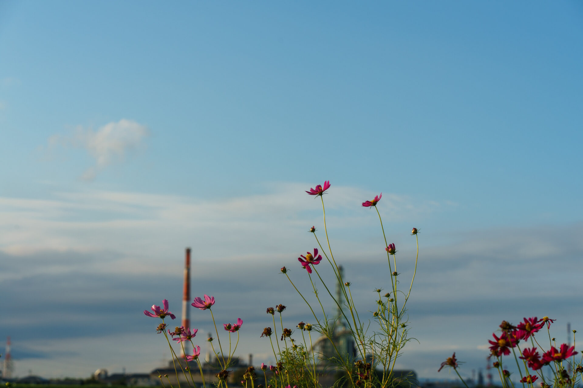 17時ごろコスモス畑を訪れましたが、夕日とコスモスの共演はとても美しかったです。