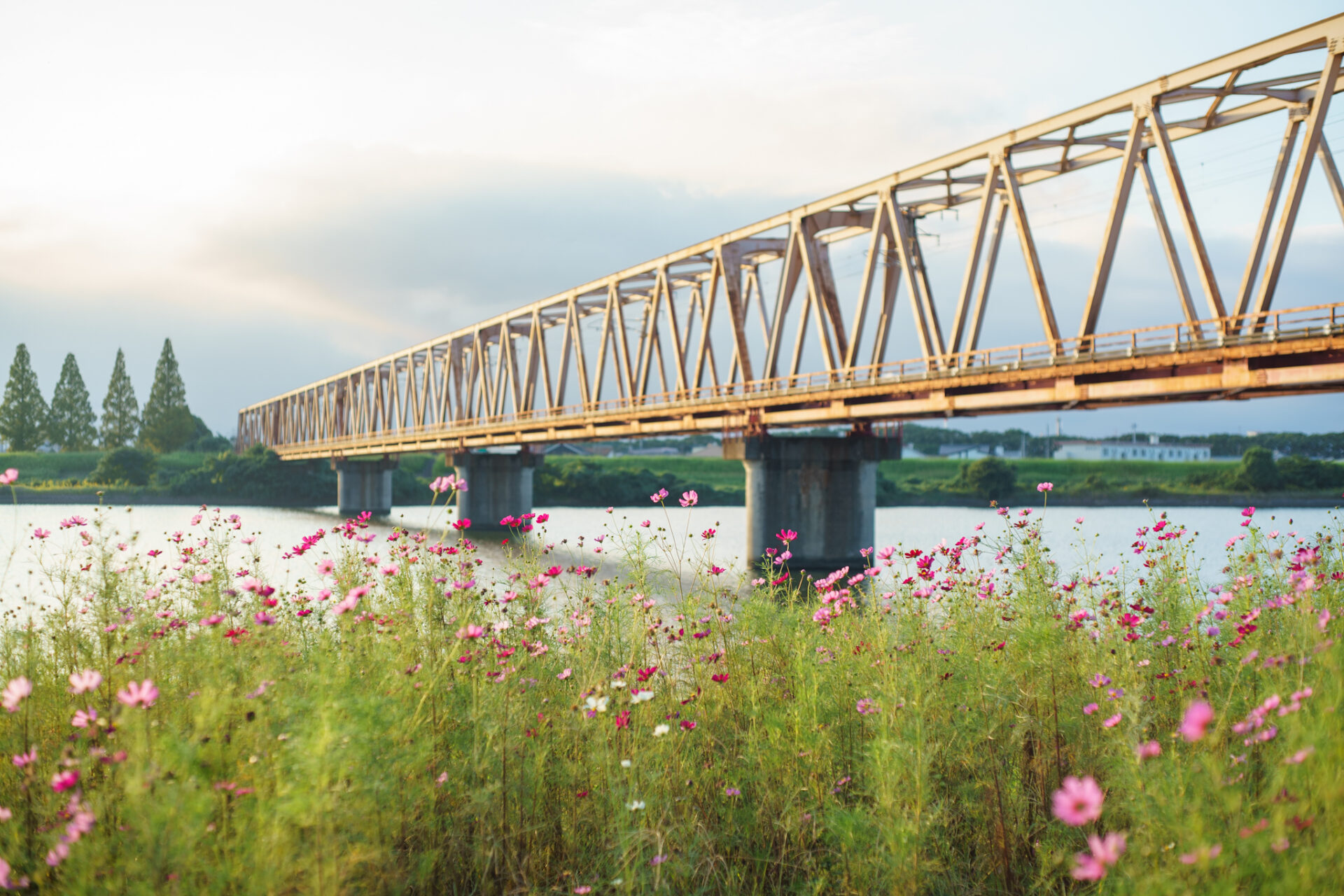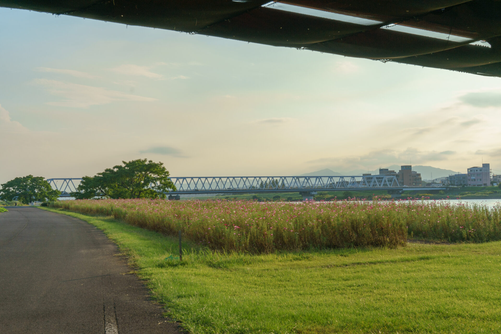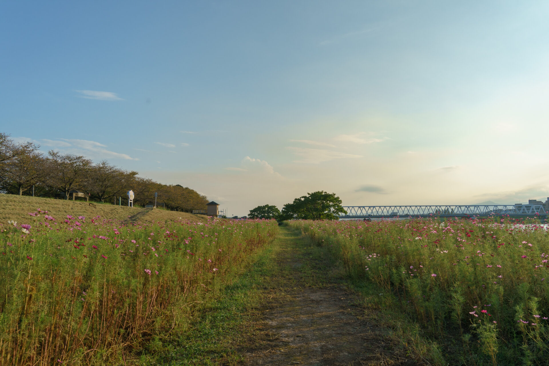 大野川河川敷右岸は、春は桜、秋はコスモスの綺麗な名所です。
