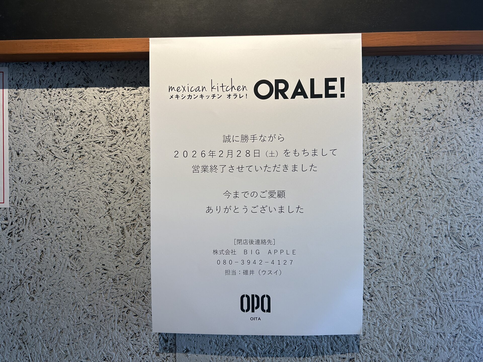 大分オーパの『メキシカンキッチン オラレ!』『サンマルヨン』が閉店していました。