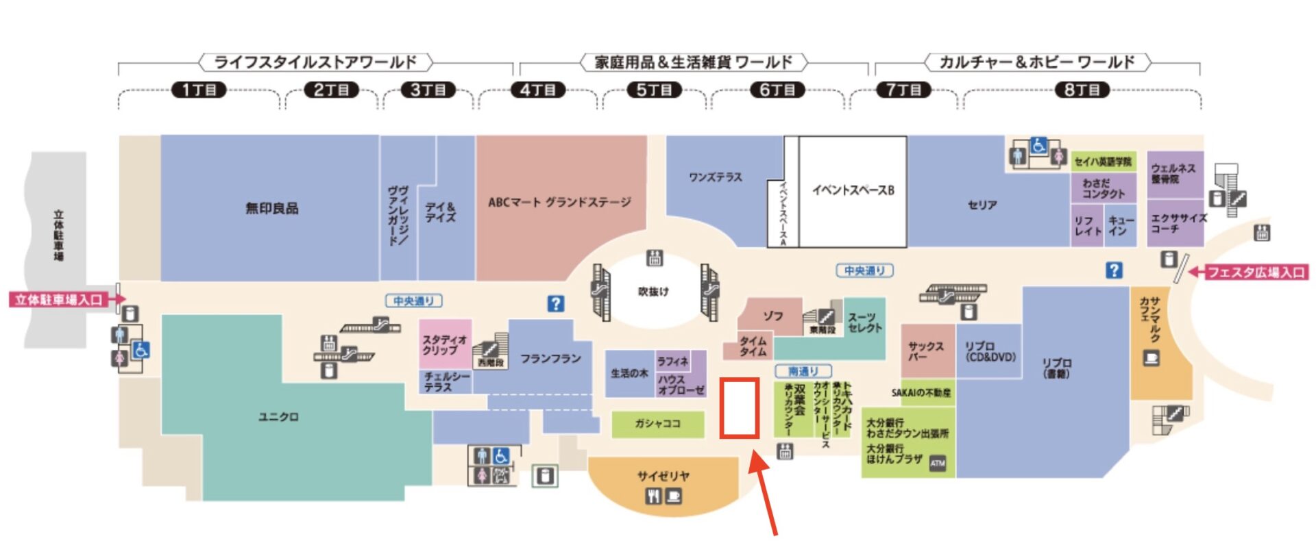 場所はトキハわさだタウンの3階です。サイゼリヤなどが近くにあります。