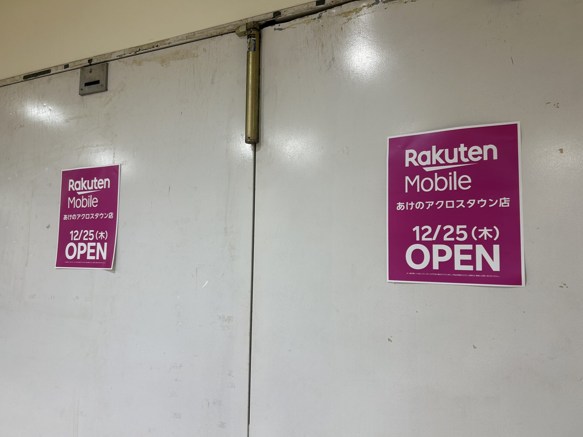 あけのアクロスタウンに『Rakuten Mobile』がオープンするそうです。
