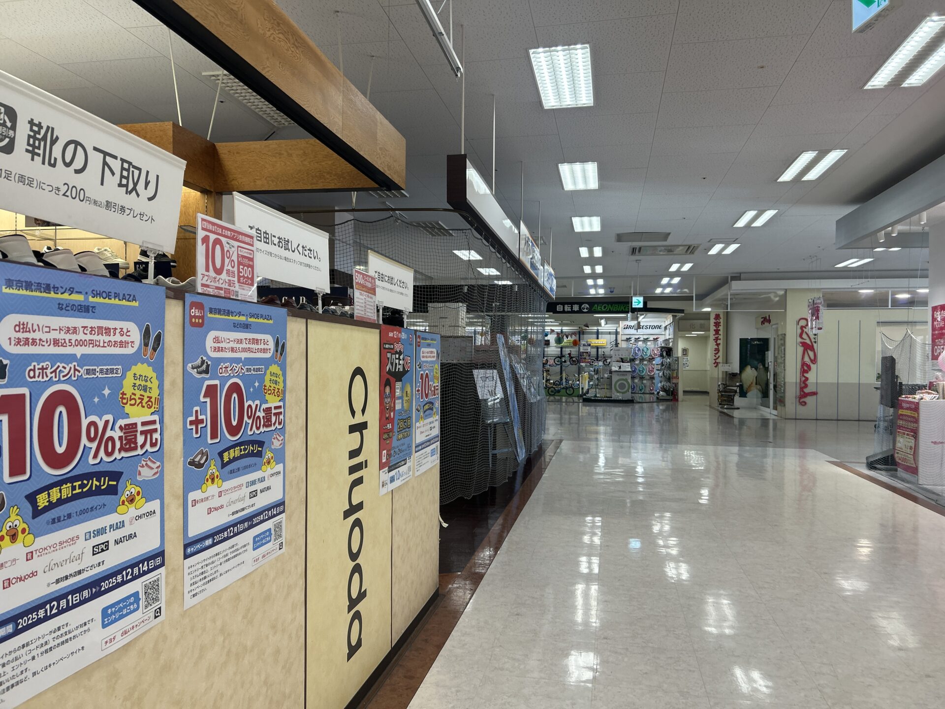 東側入り口近くで、向かいには『靴のチヨダ』があります。