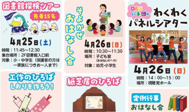 4月23日から5月12日までの「こどもの読書週間」に合わせ、親子で一緒に楽しめる様々なイベントを開催します。 ぜひ、ご…