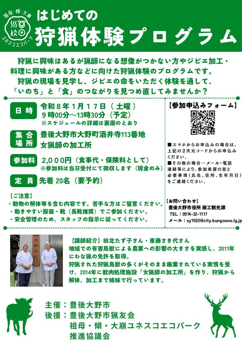 狩猟の現場に触れながら、地域の自然と向き合う貴重な機会です。ぜひご参加ください。