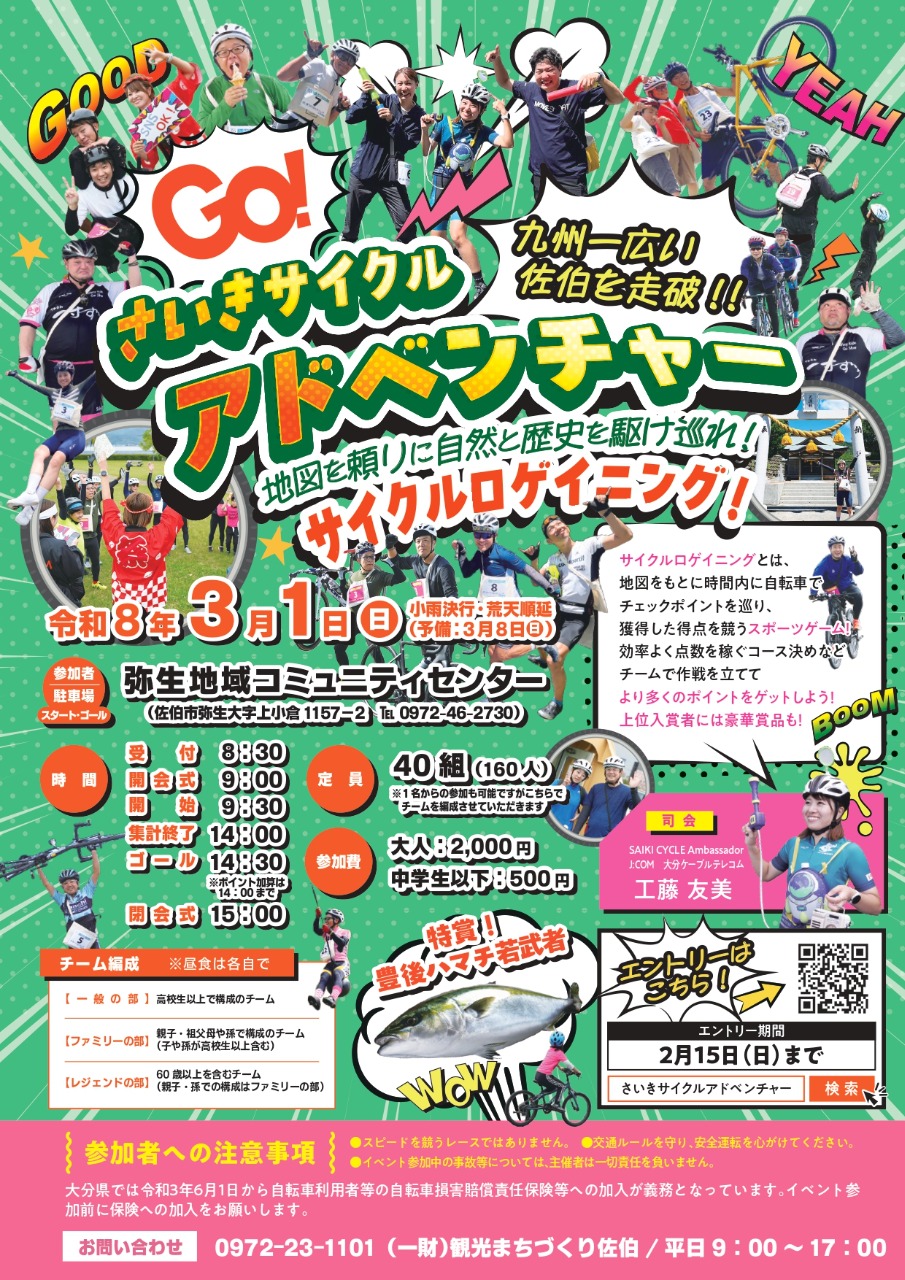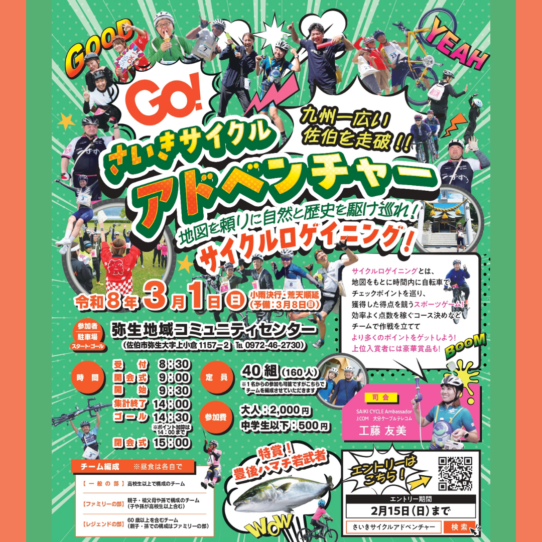 2/15まで受付中!『さいきサイクルアドベンチャー ~地図を頼りに自然と歴史を駆け巡れ~サイクルロゲイニング』に参加しませんか?