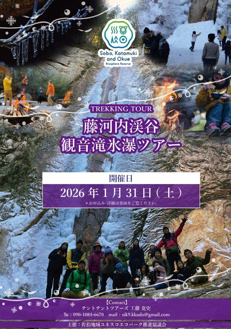 今年も『藤河内渓谷 観音滝氷瀑ツアー』が開催されます。申込受付中です