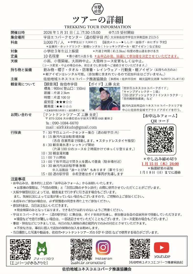 【参加者募集】令和8年1月31日(土曜日)藤河内渓谷 観音滝氷瀑ツアーを実施します! / エコパーク / 佐伯市…