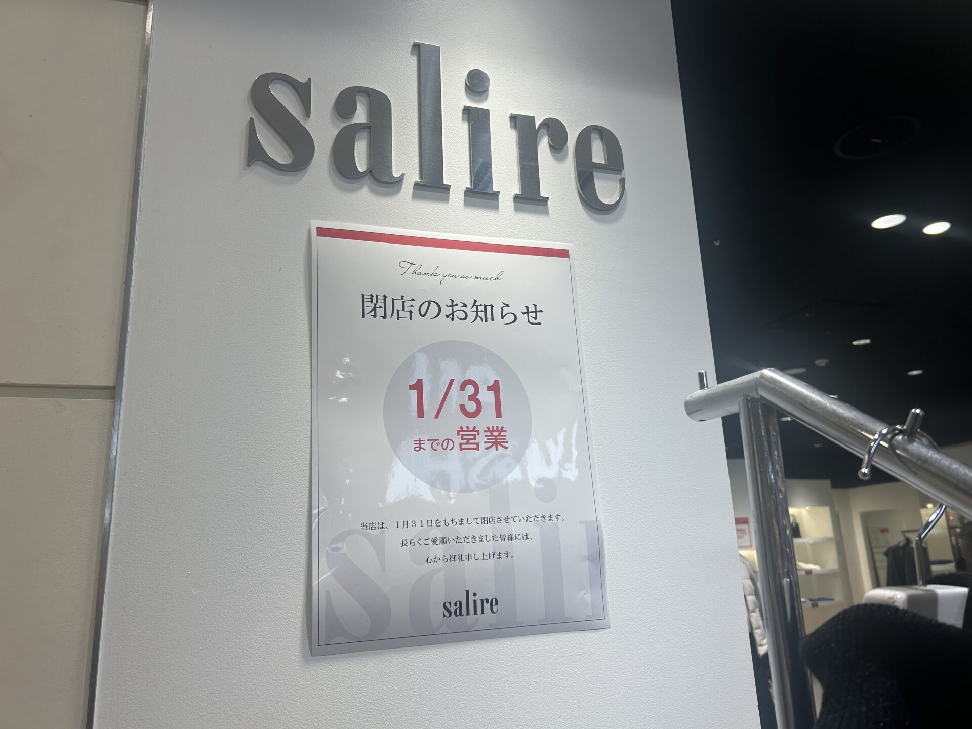 アミュプラザおおいたのレディースアパレルブランド『salire(サリア)』が閉店するそうです。