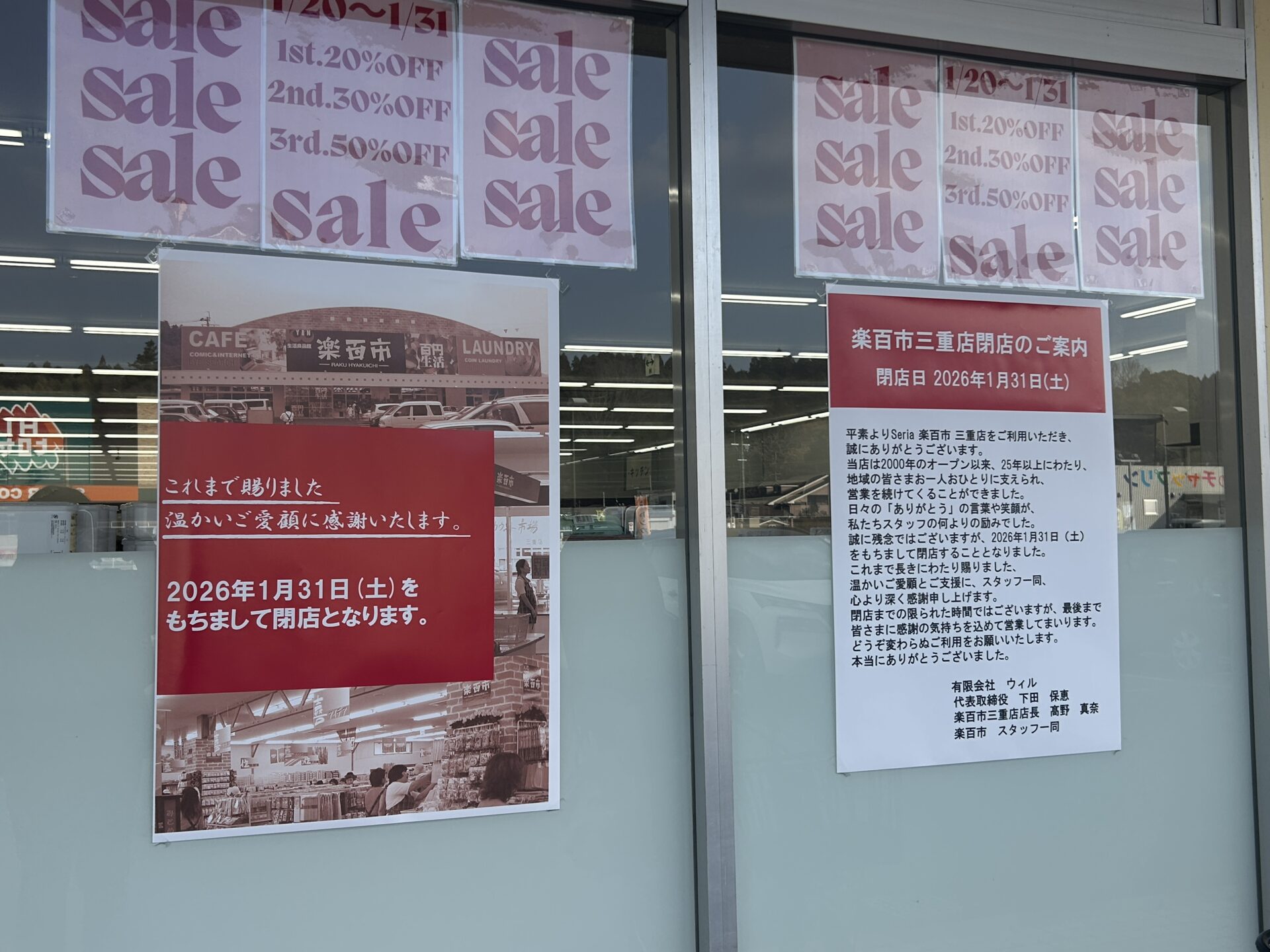 豊後大野市三重町の『セリア 楽百市三重店』が閉店するそうです。