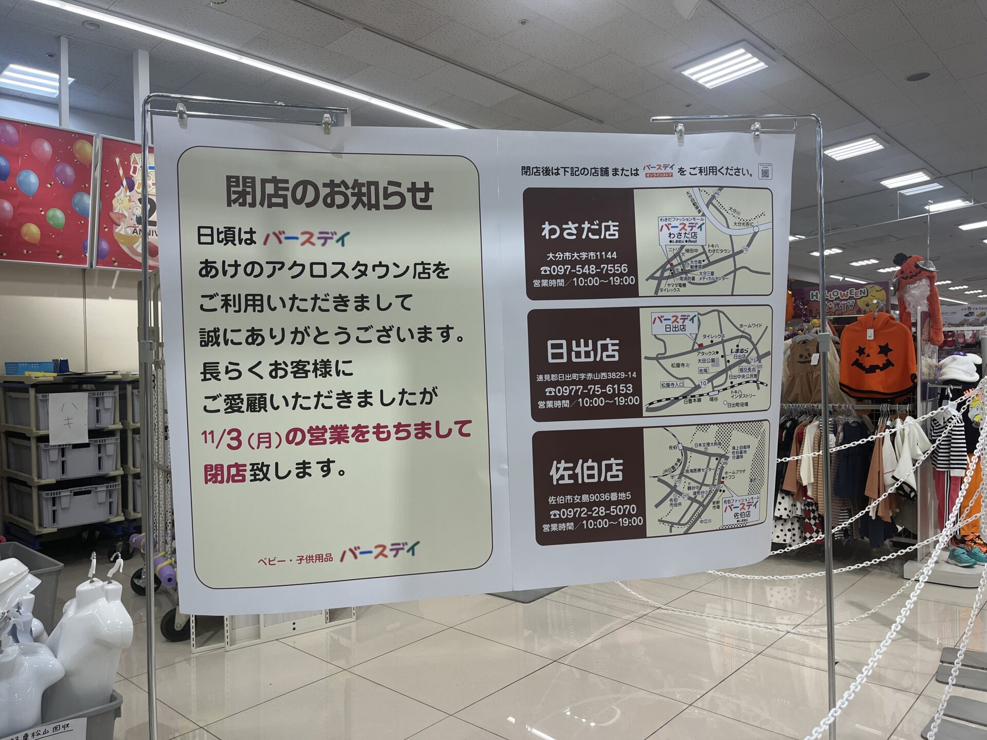 『バースデイ あけのアクロスタウン店』と『アベイル あけのアクロスタウン店』が閉店するようです。