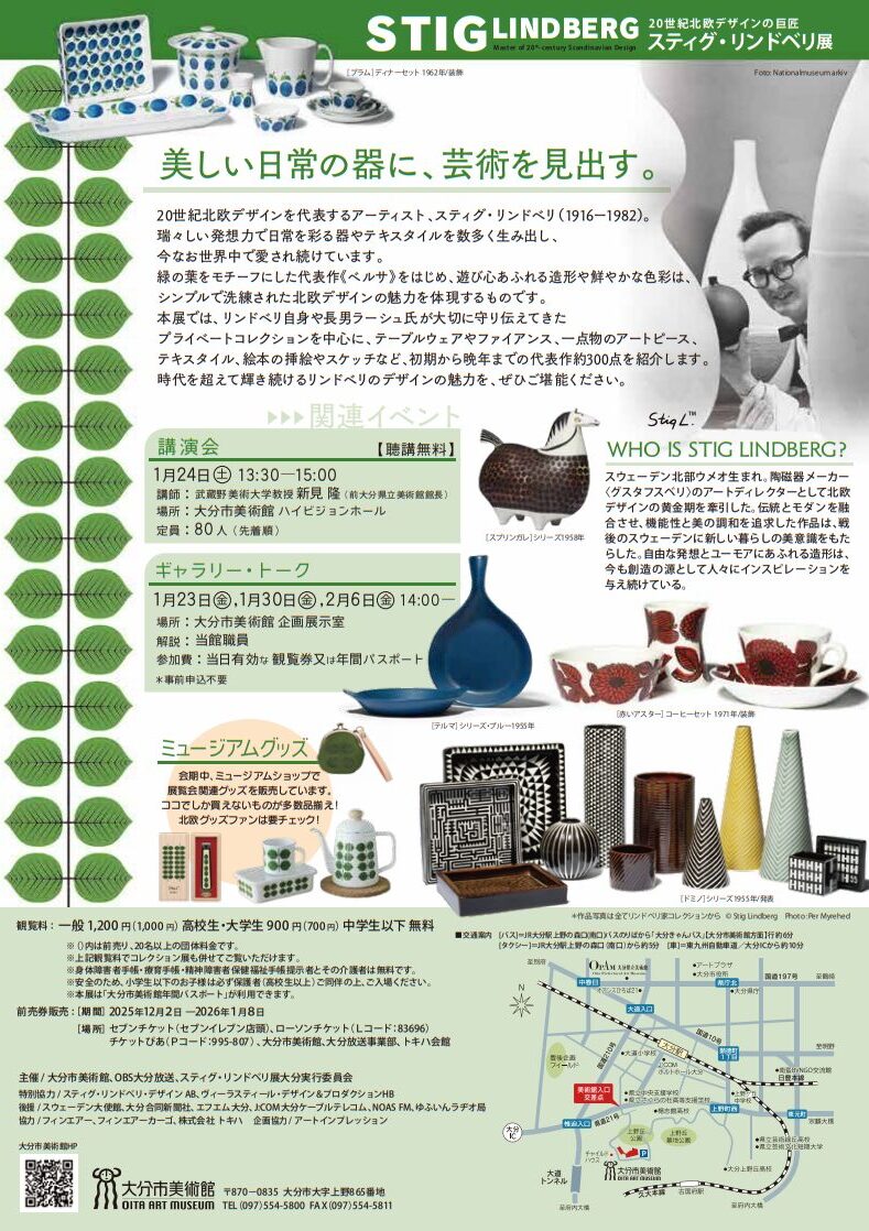 大分市美術館特別展『20世紀北欧デザインの巨匠 スティグ・リンドベリ展』が開催されます。