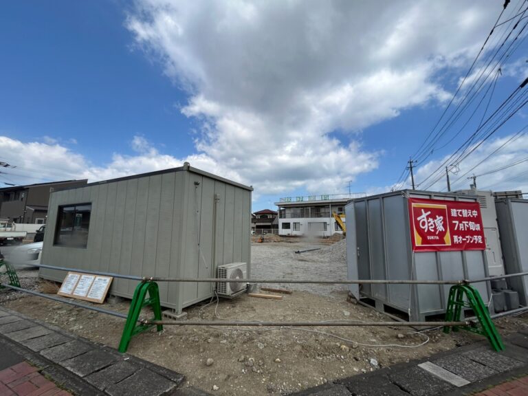 情報提供をうけ現地を確認したところ、【建て替え中 7月下旬頃再オープン】とのお知らせがありました。