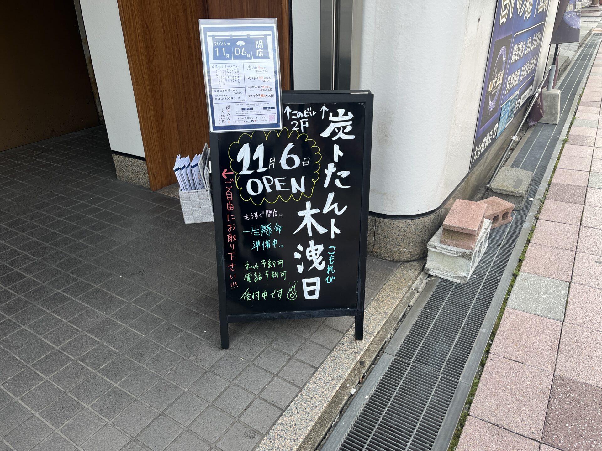 大分市府内町、中央通り沿いに『炭トたんト 木洩日(こもれび)』がオープンするようです。
