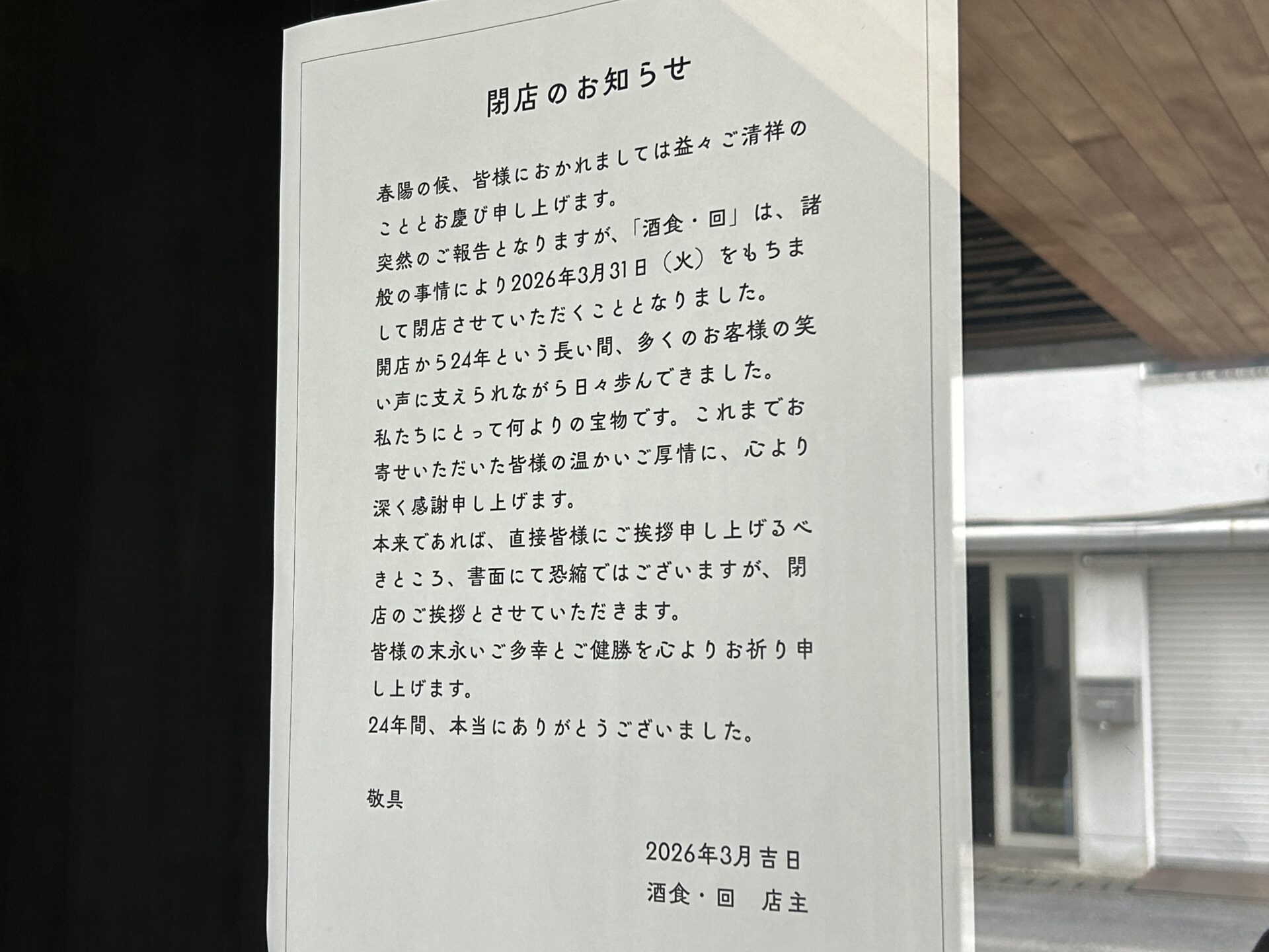お知らせによると、諸般の事情により2026年3月31日(火)をもって閉店したとのこと。