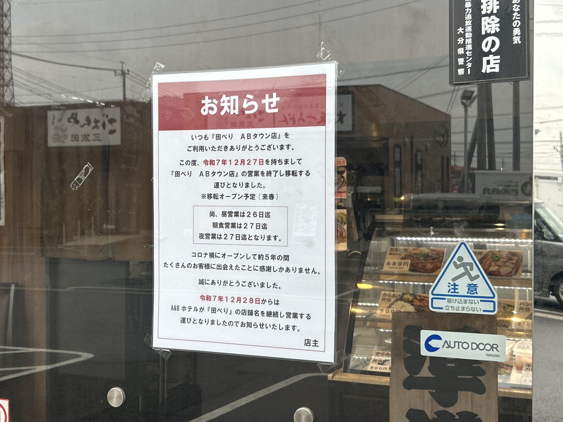 大分市三佐の『田べり ABタウン店』が移転するそうです。