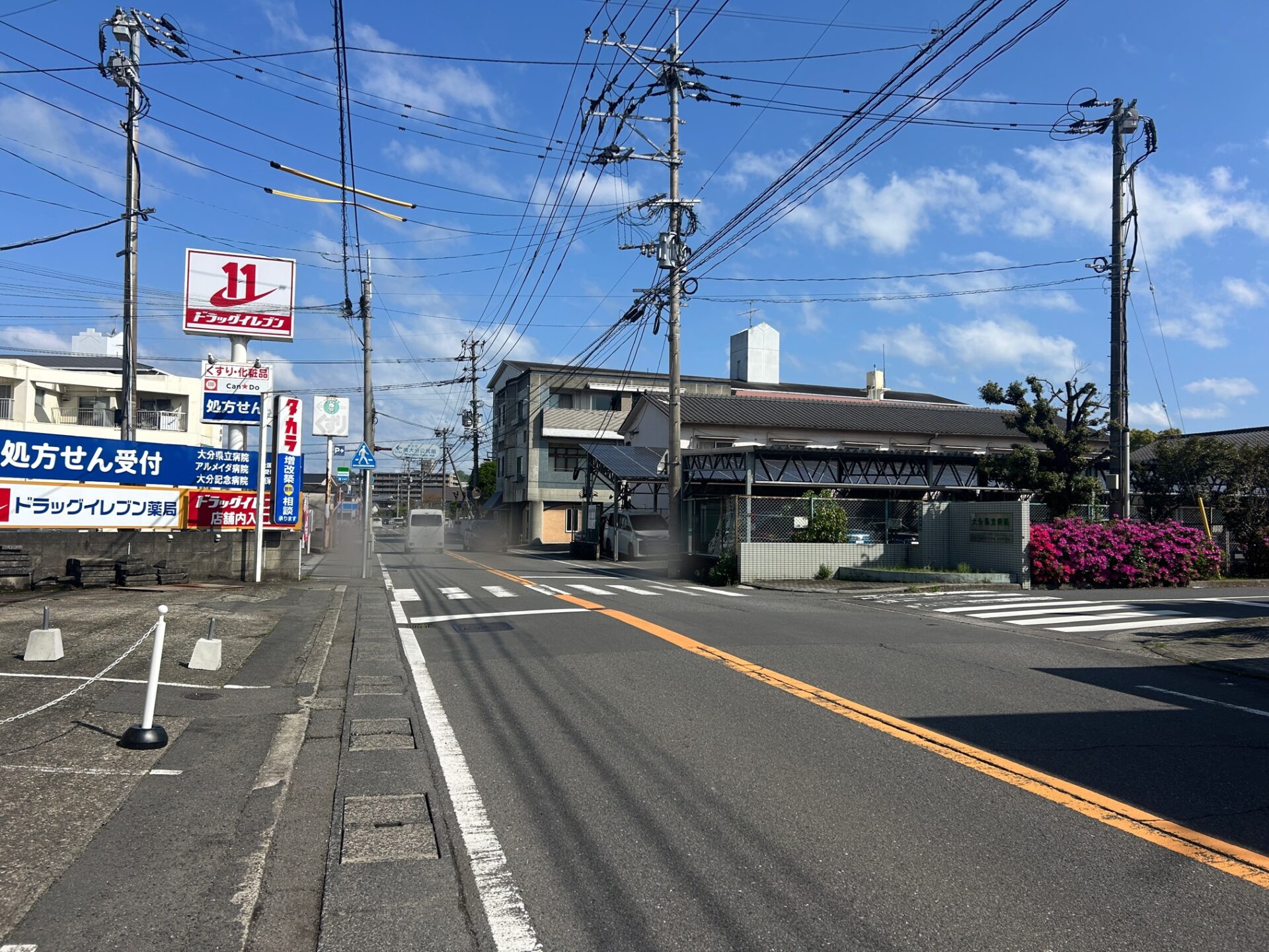 大分県立病院の裏手の通りにあり、西口門すぐの場所です。