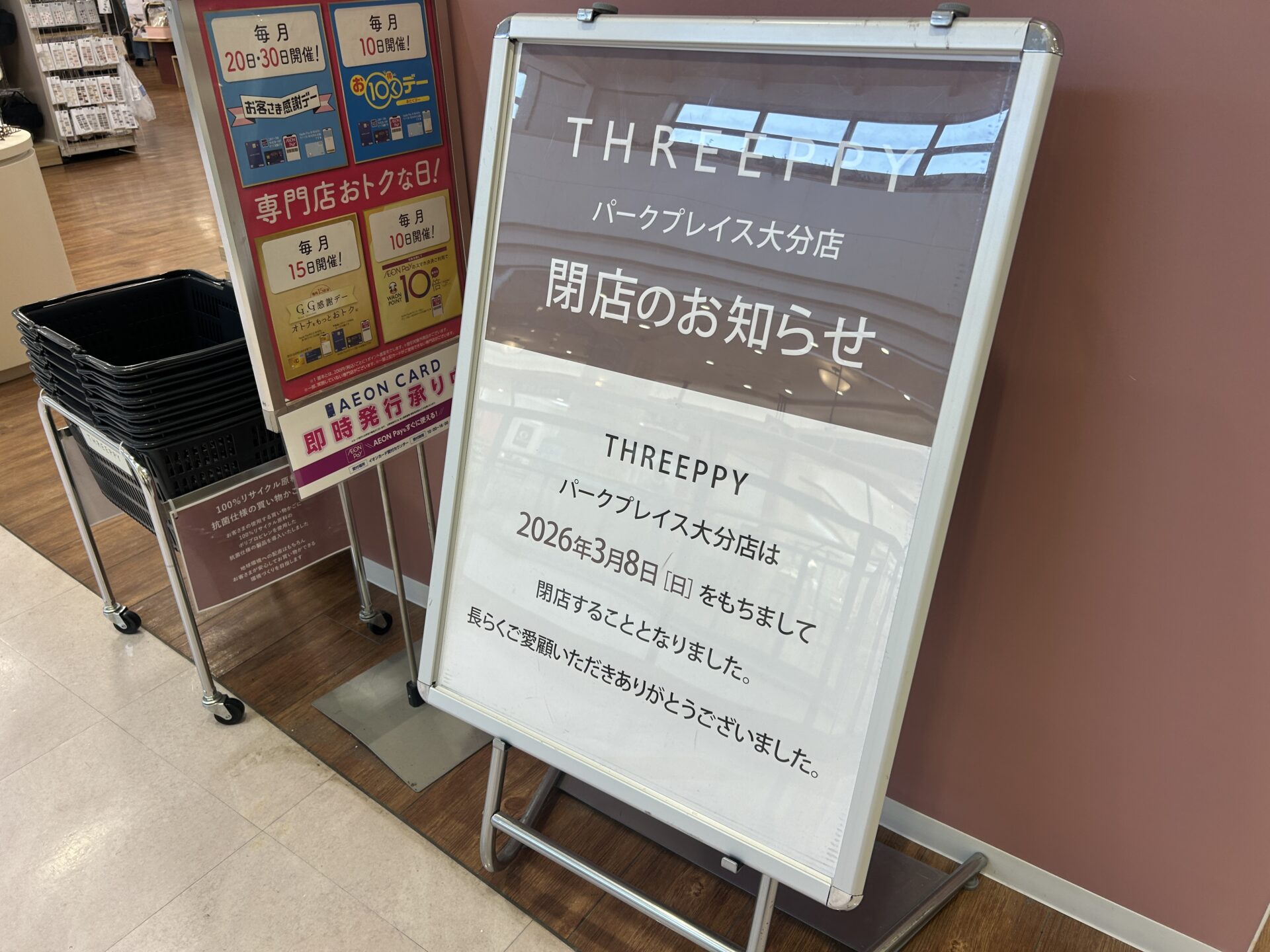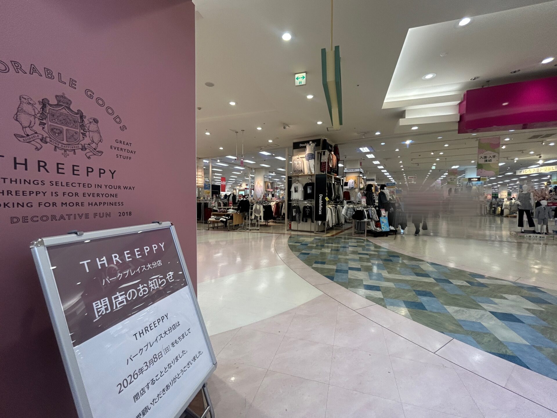 パークプレイス大分の『THREEPPY』が閉店するそうです。