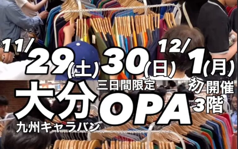 大分オーパに3日間限定の古着POP UP『安値0円の古着屋ツルクロ』が開催されます。