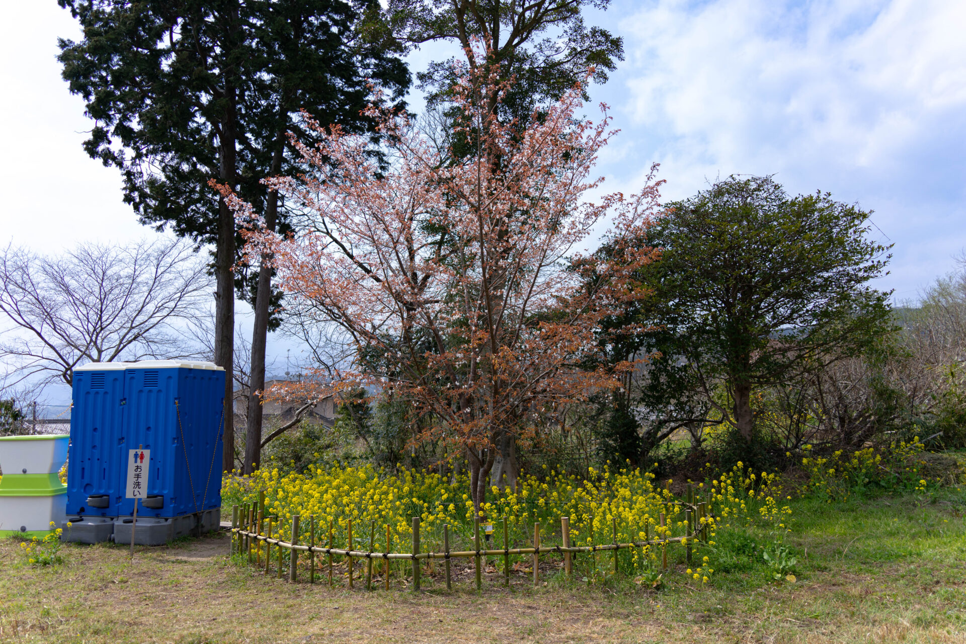 『魚見桜』があるのは住宅街の中で周りにお店などはありませんが、敷地内には簡易トイレも設置されているので、ゆっくり過ごすことができますよ。