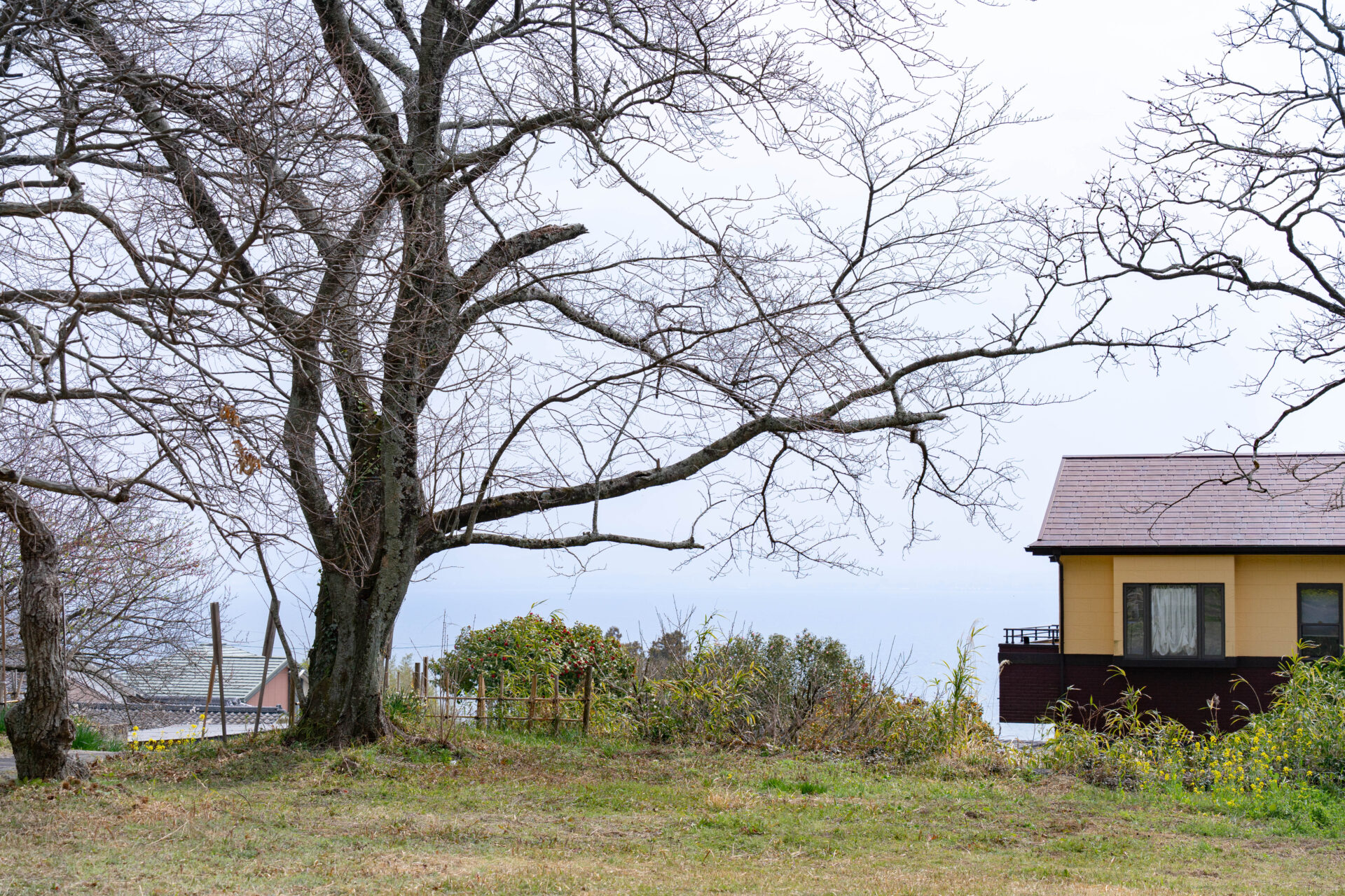 樹齢400年ともいわれるヤマザクラの巨樹は、長年この日出町の人々と海を見守り続けています。