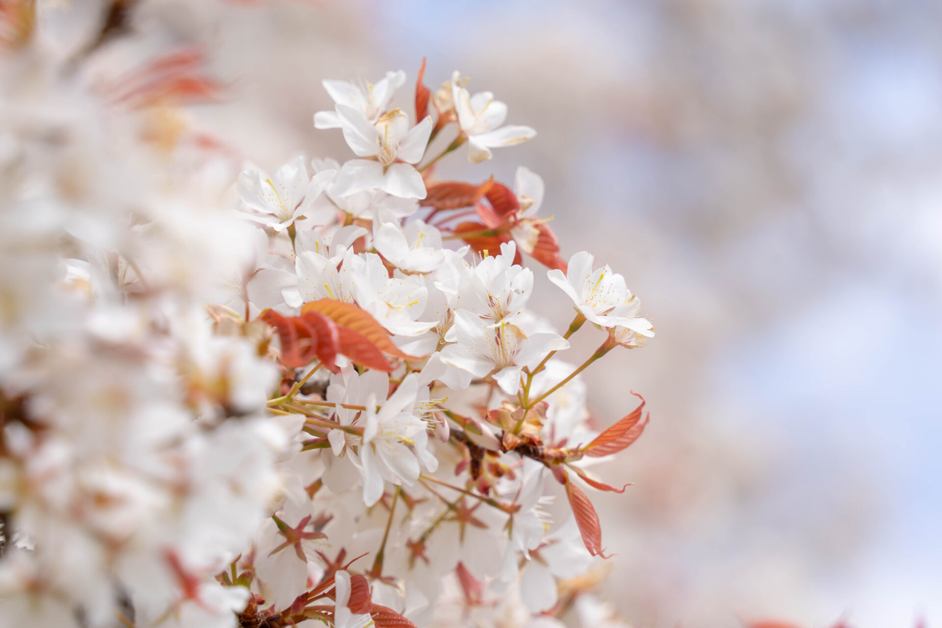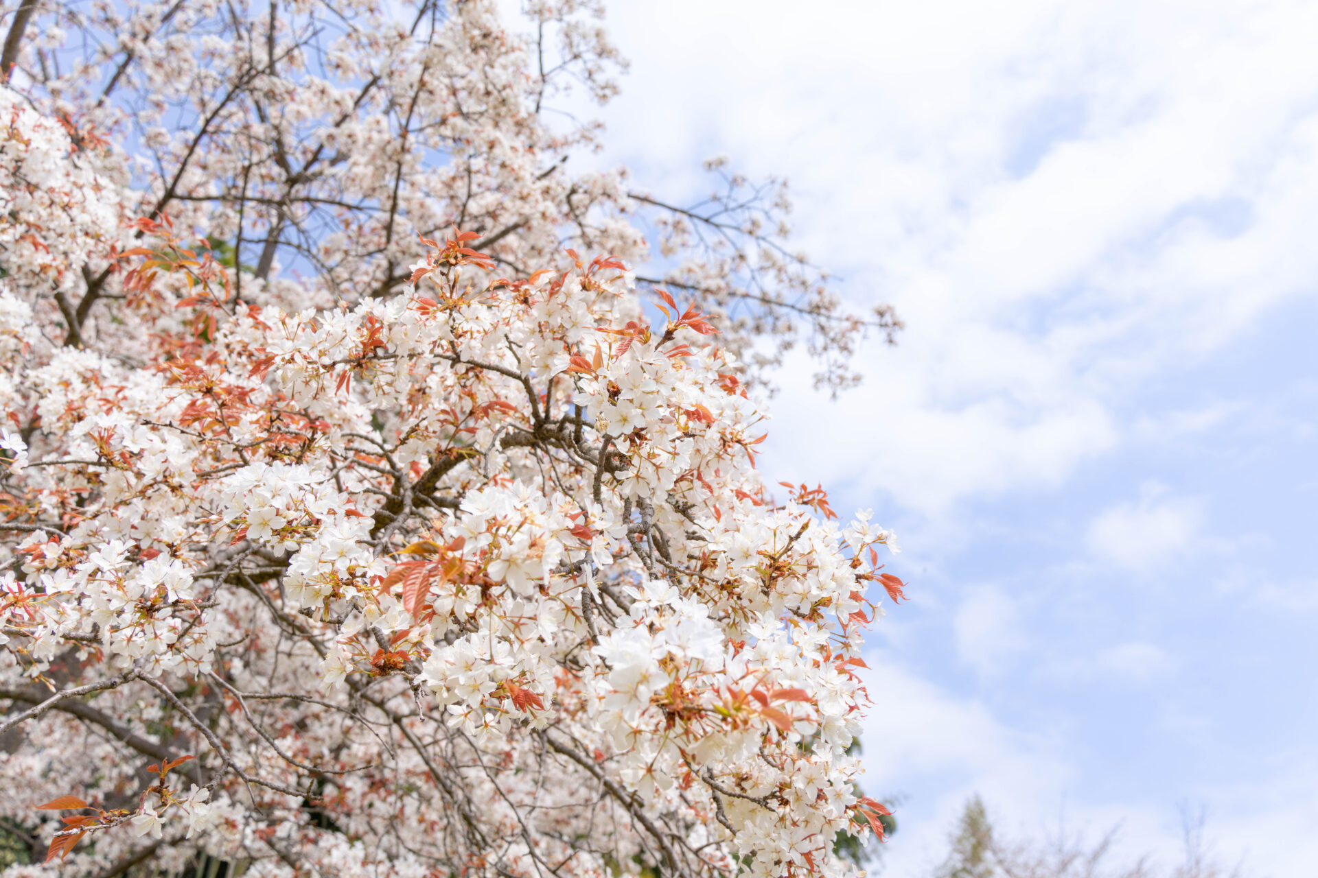 ヤマザクラの一種である『魚見桜』は、白い花と赤みを帯びた若葉が同時に開くことが特徴です。